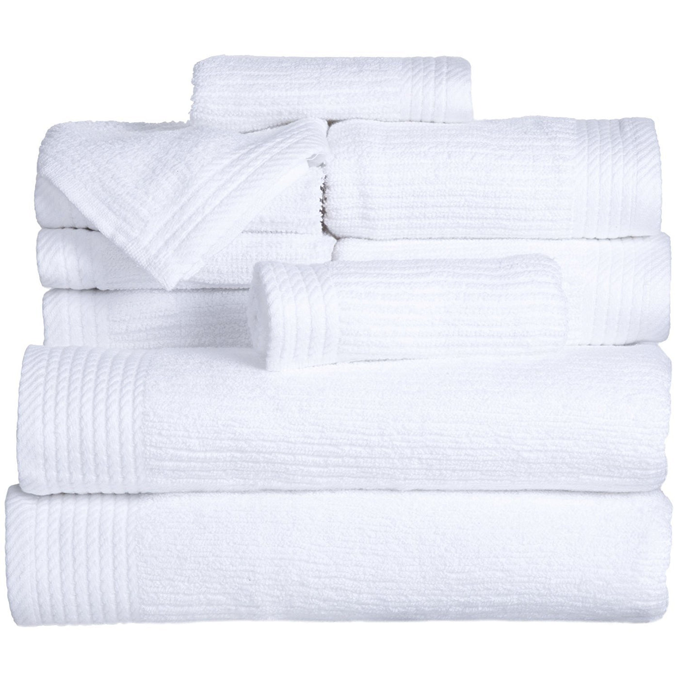 Bedford Home Ribbed Cotton 10 Piece Towel Set - White