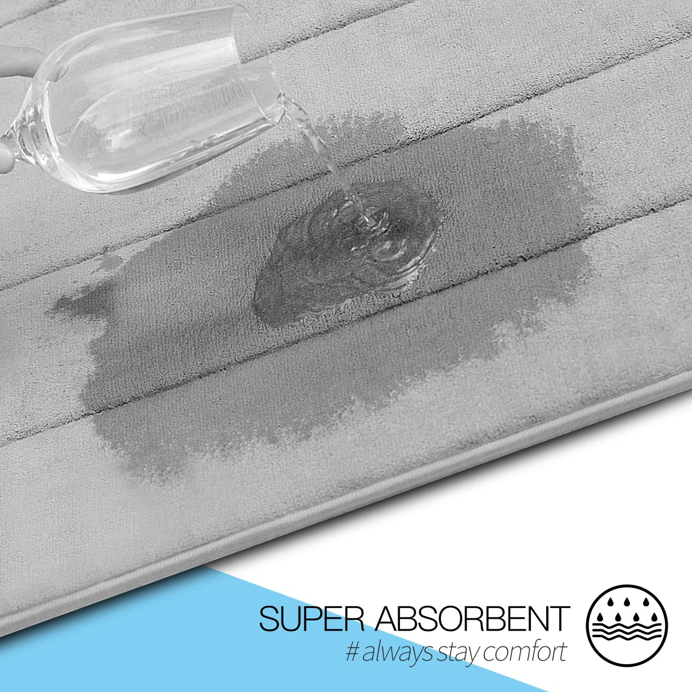 • Q: How does the memory foam in this mat help? A: The memory foam in the Betus toilet mat holds four times its weight in water, providing excellent absorbency and helping to keep your bathroom dry.