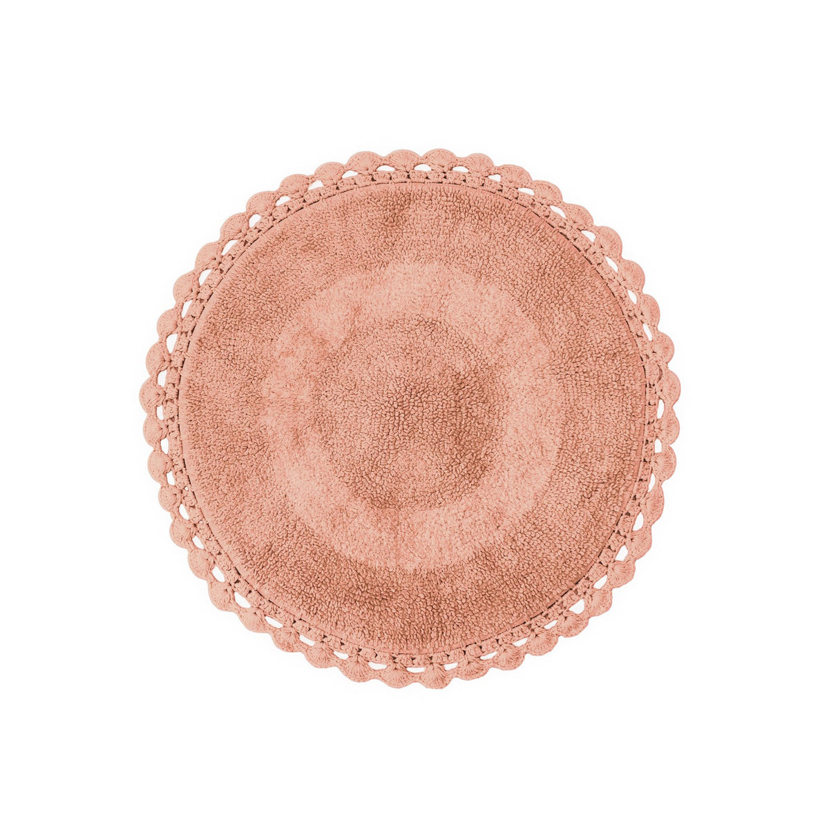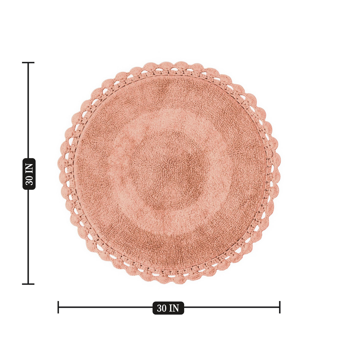 Bien Beau Round Bohemian Bathroom Rug With Crochet Contour. Coquette Inspired -100% Cotton, Reversible Round Boho Bedroom Rug-Bo