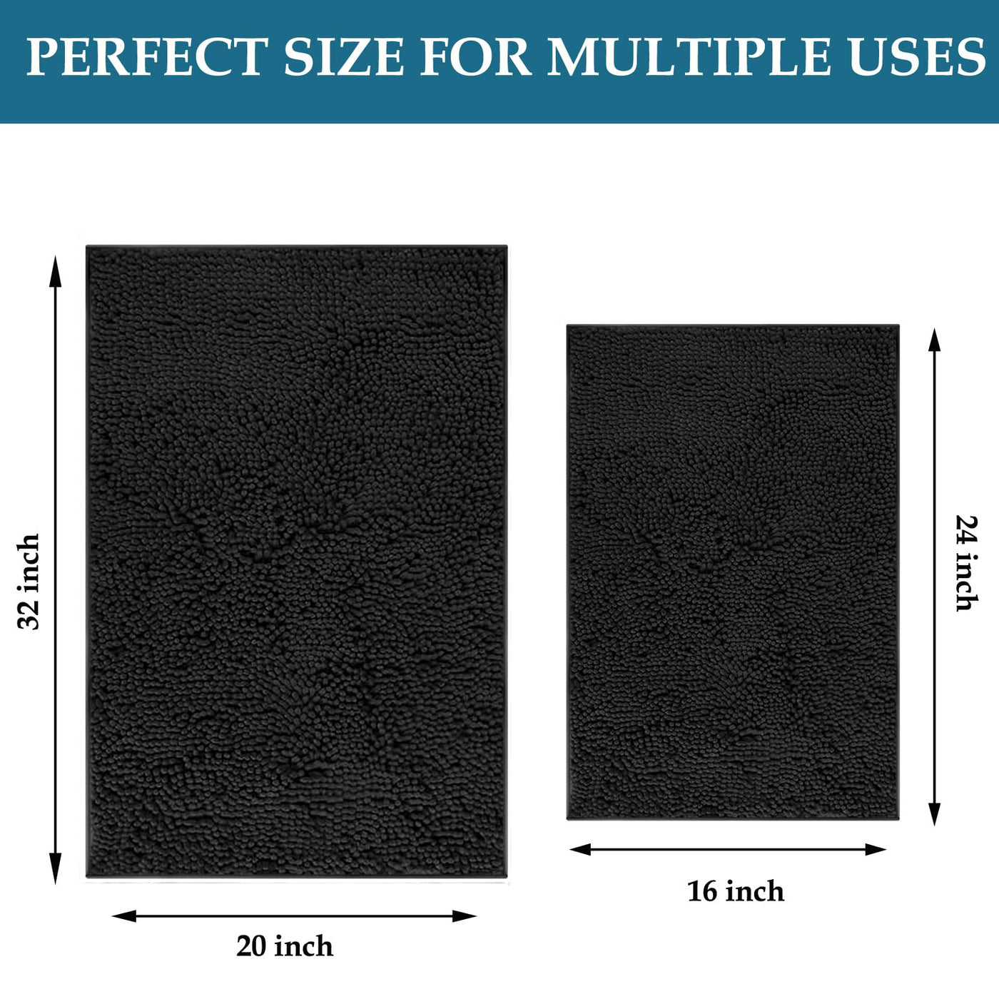Black Bathroom Rugs Non Slip Bath Rugs Set 2 Piece, Bathroom Rug Bath Mats For Bathroom, Thick Soft Chenille Bathroom Rug Set, B