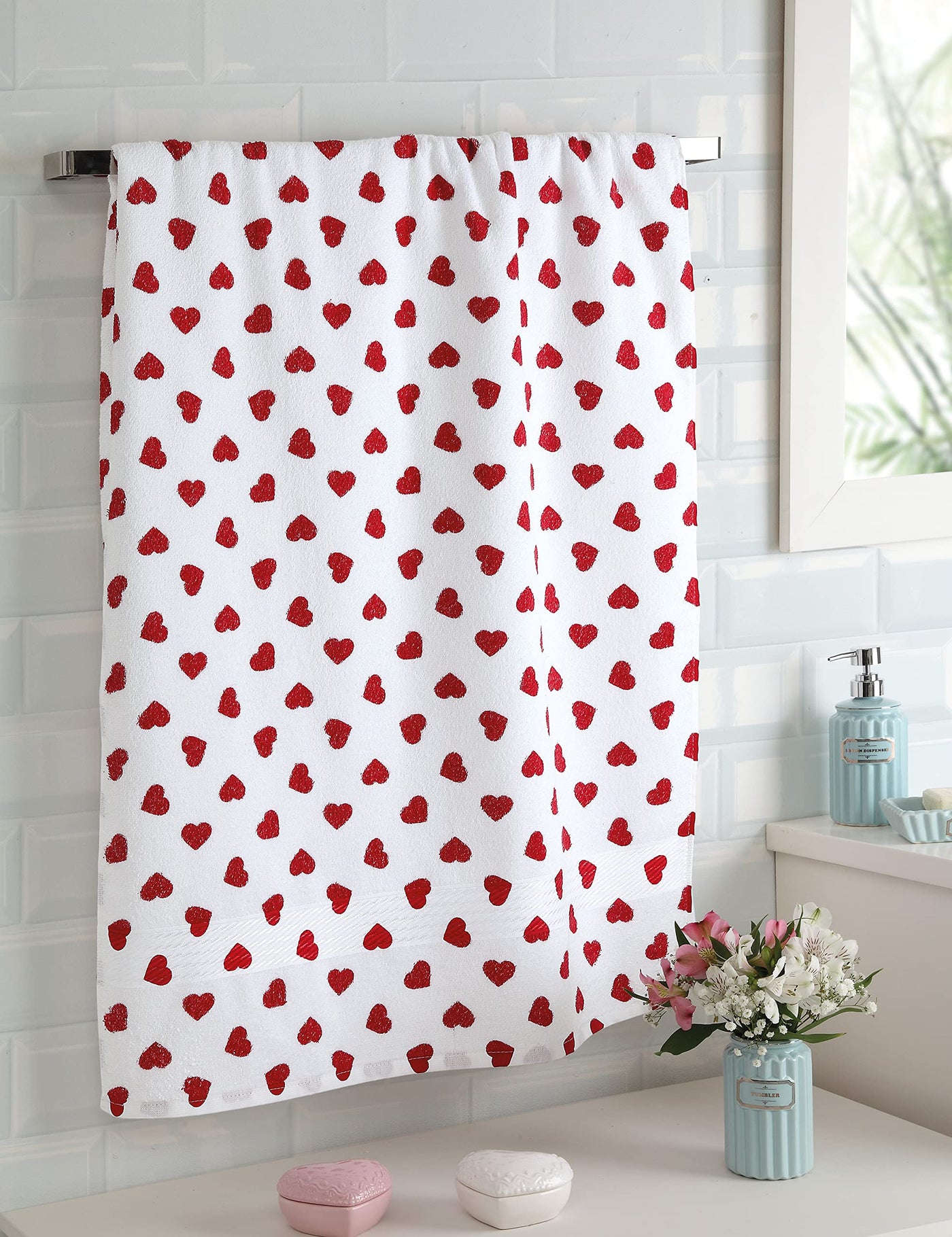 Cackleberry Home Hearts All Over Bathroom Cotton Terry Bath Towels 27 X 54 Inches, Set Of 2 (Red)