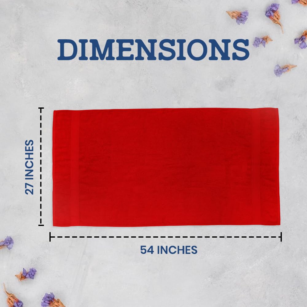 - Q: What are the dimensions of the Casa Lino Red Bath Towels? A: The Casa Lino Red Bath Towels measure 54 inches by 27 inches.