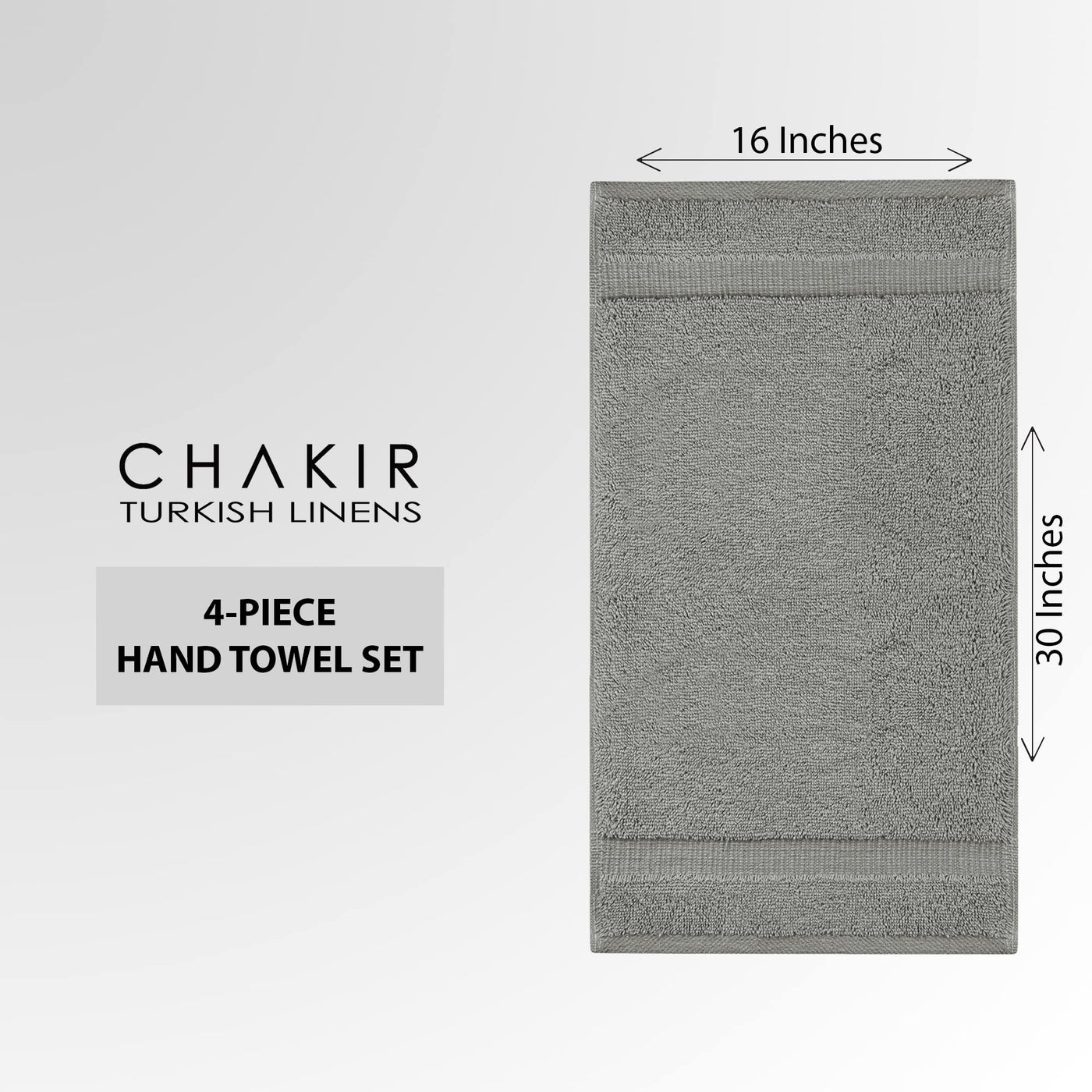 Chakir Turkish Linens 100% Cotton Premium Turkish Towels For Bathroom | 16'' X 30'' (4-Piece Hand Towel, Gray)