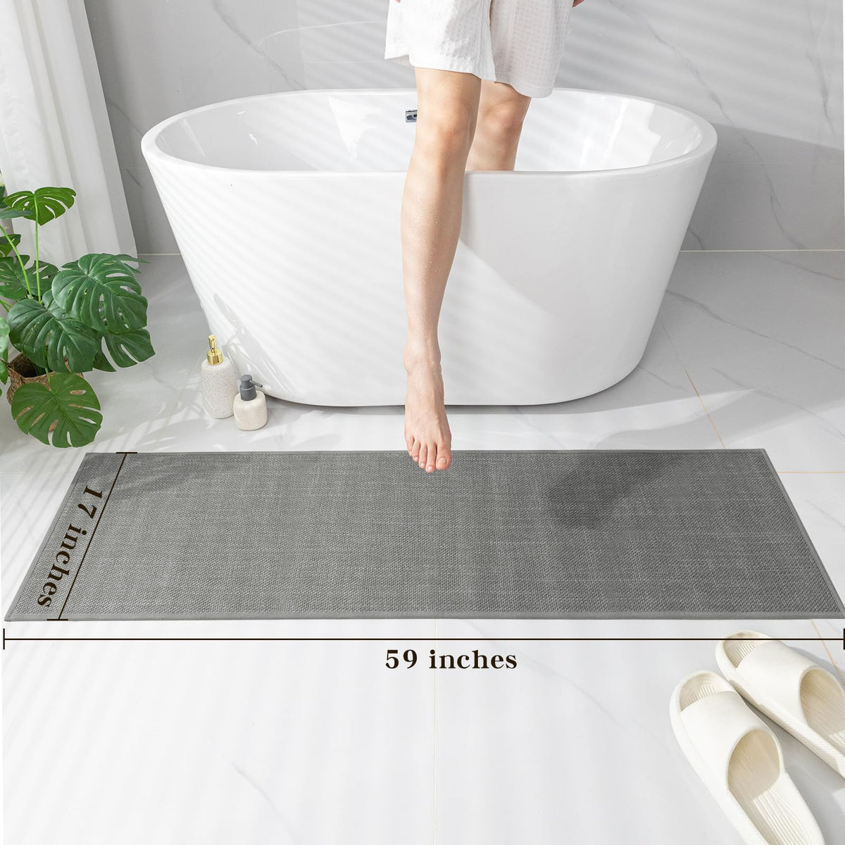Chakme Bathroom Rugs Mat 59X17, Ultra Thin Non Slip Bath Mat Runner Quick Dry Absorbent Bath Mat For Bathroom Floor, (Dark Grey,