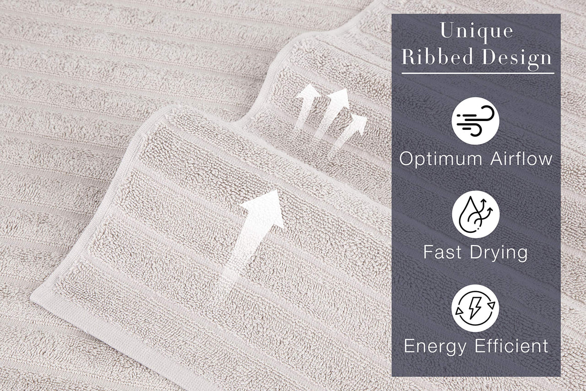 - Q: What is the design of the washcloths? A: The washcloths feature a beautiful ribbed Jacquard design that adds elegance to any bathroom.