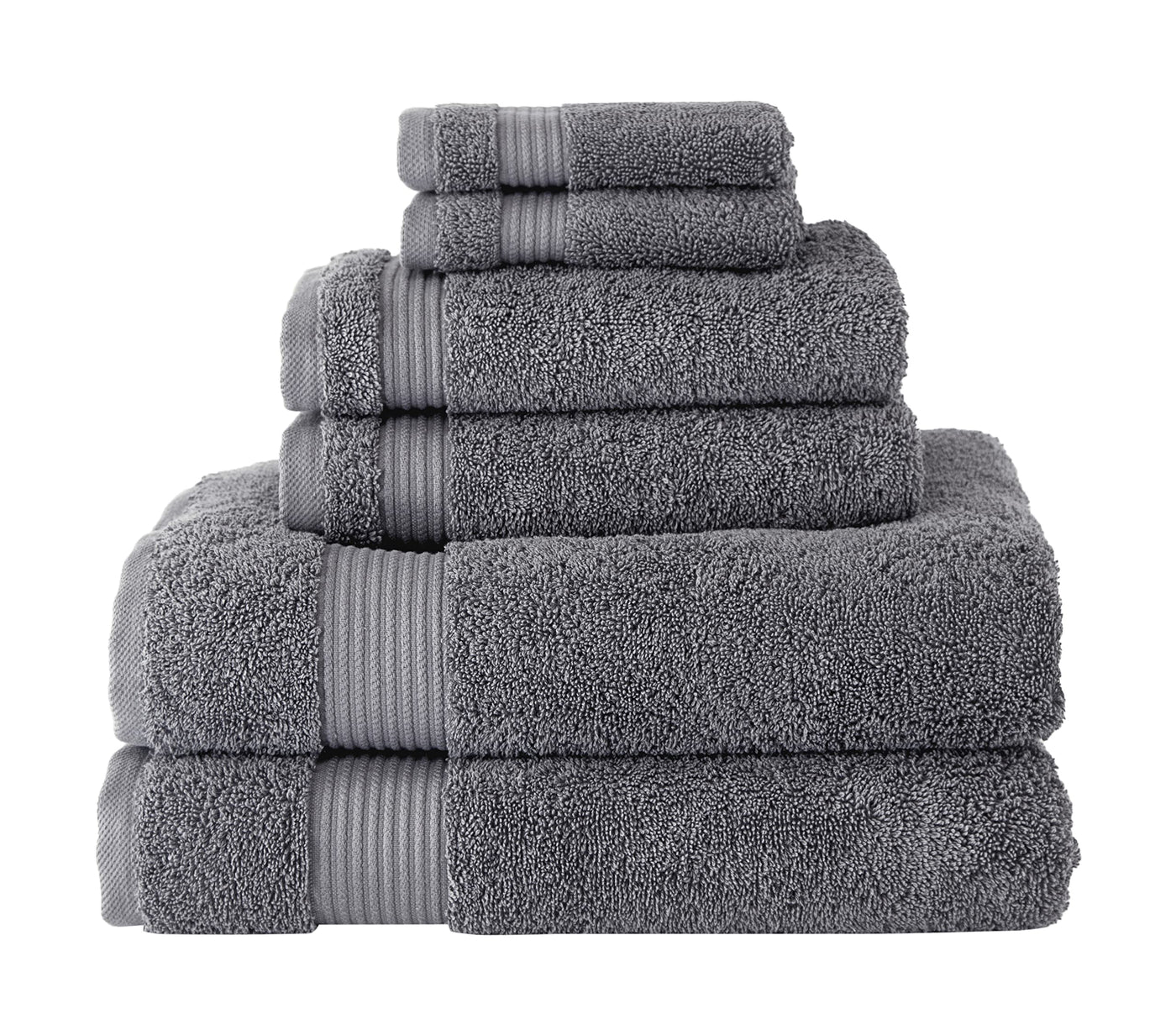 - Q: What sizes are included in the 6-piece towel set? A: The towel set includes 2 standard bath towels measuring 30 x 54 inches, 2 hand towels measuring 16 x 27 inches, and 2 washcloths measuring 12 x 12 inches.