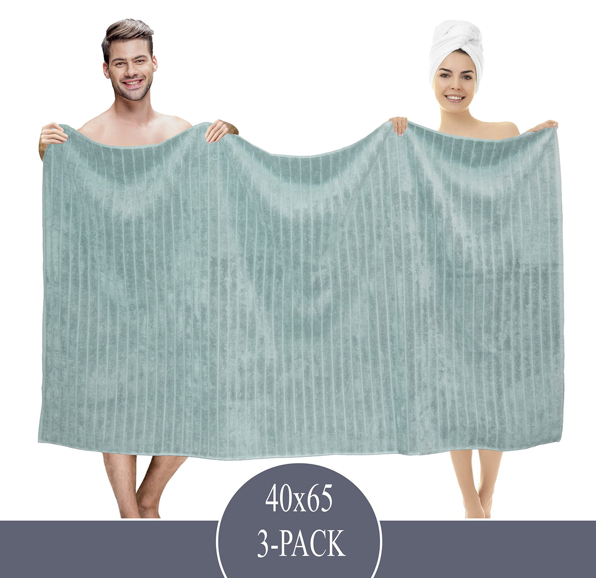 - Q: What are the dimensions of these bath towels? A: Each bath towel in the set measures 40 by 65 inches, making them extra-large for maximum coverage.