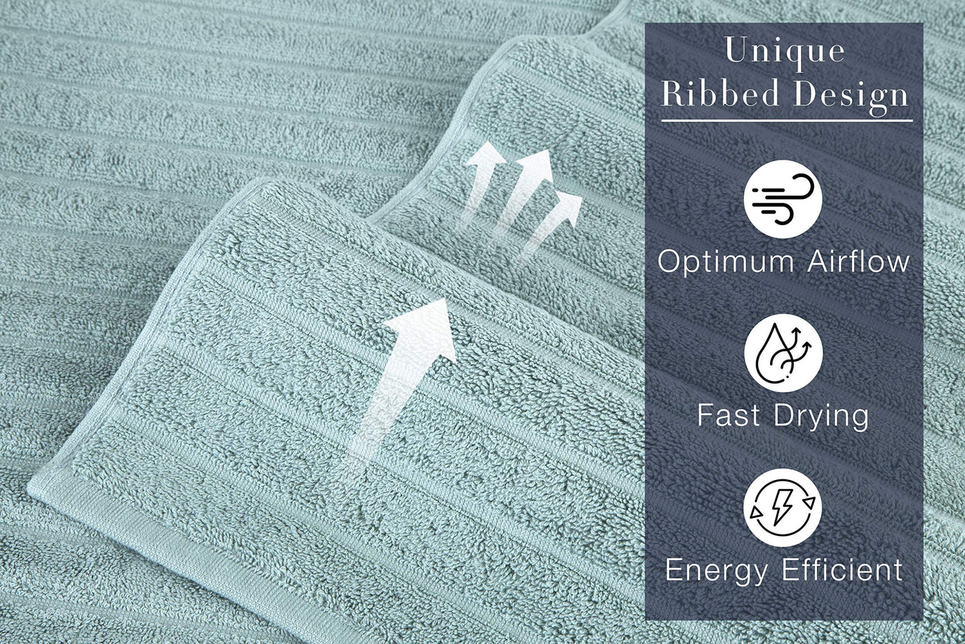 Classic Turkish Towels - Extra Large Premium Cotton Bath Sheet Set - Thick and Absorbent Ribbed 3-Piece Luxury Bathroom Towels 40x65 inches 100% Turkish Cotton (Spa Green)