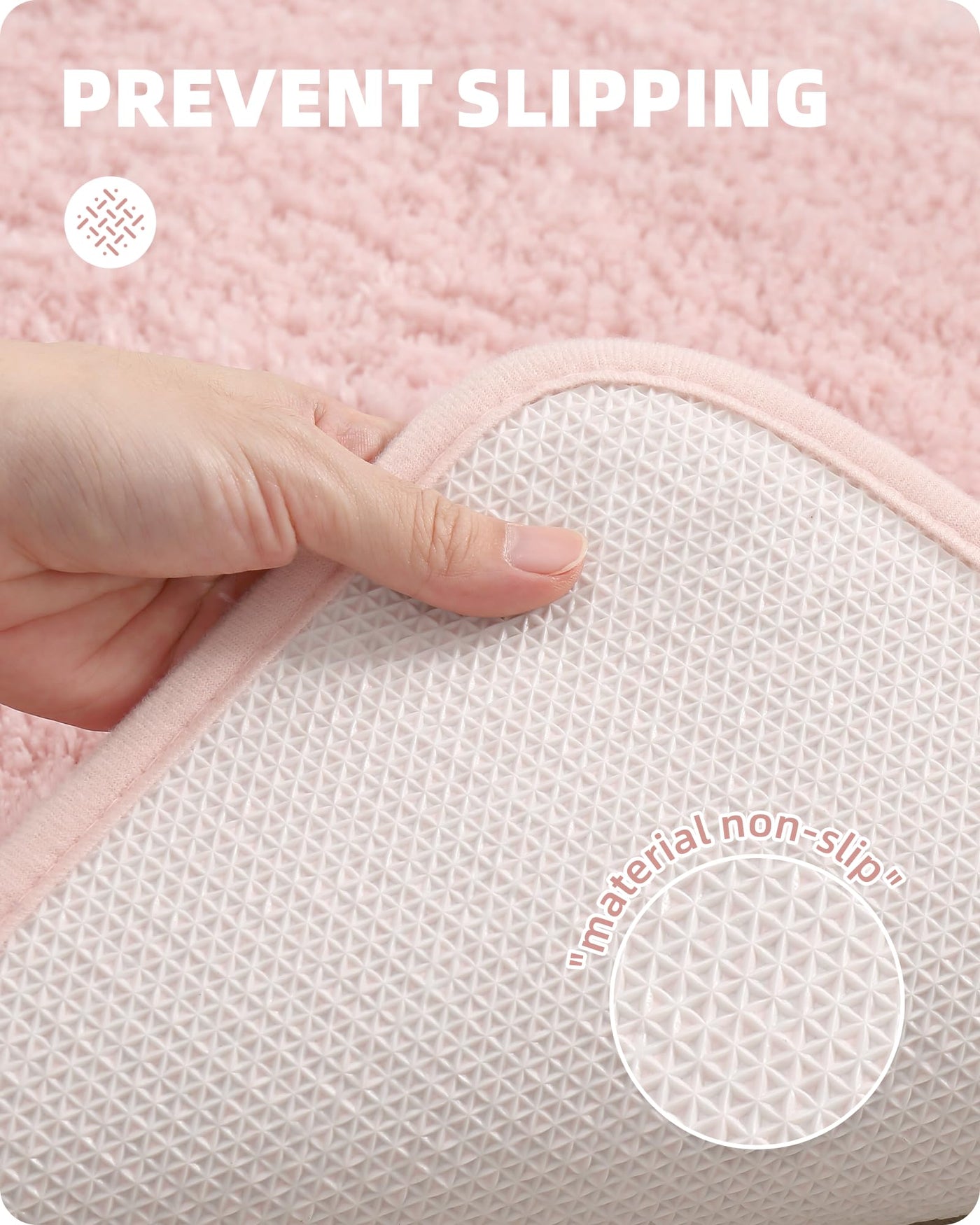 • Q: Is the bathroom rug non-slip? A: Yes, the bathroom rug features a grippy TPR rubber backing that helps keep it in place on slippery surfaces.