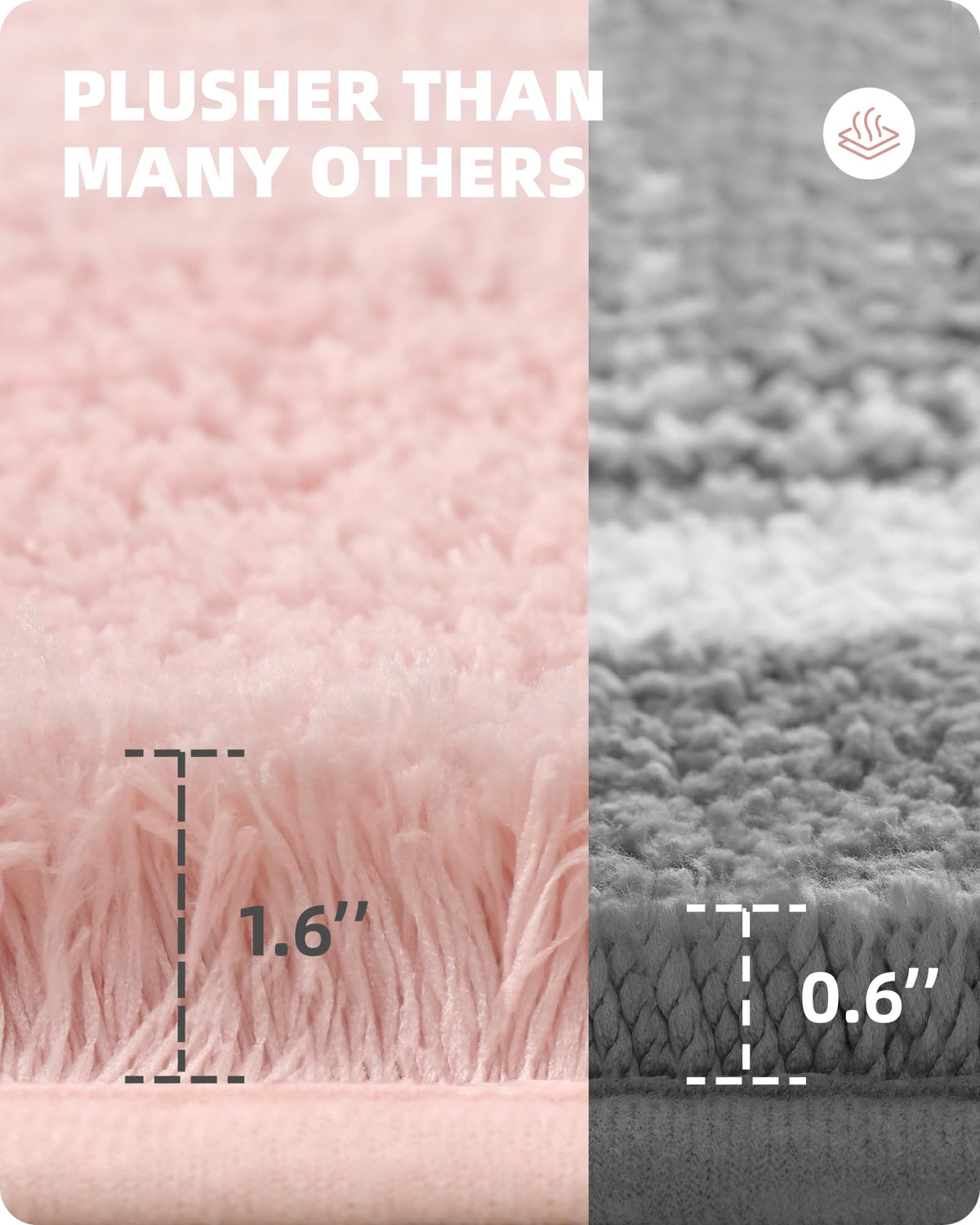 • Q: What color options are available for this rug? A: This rug is designed in a solid light pink color, which can complement various bathroom decor styles.