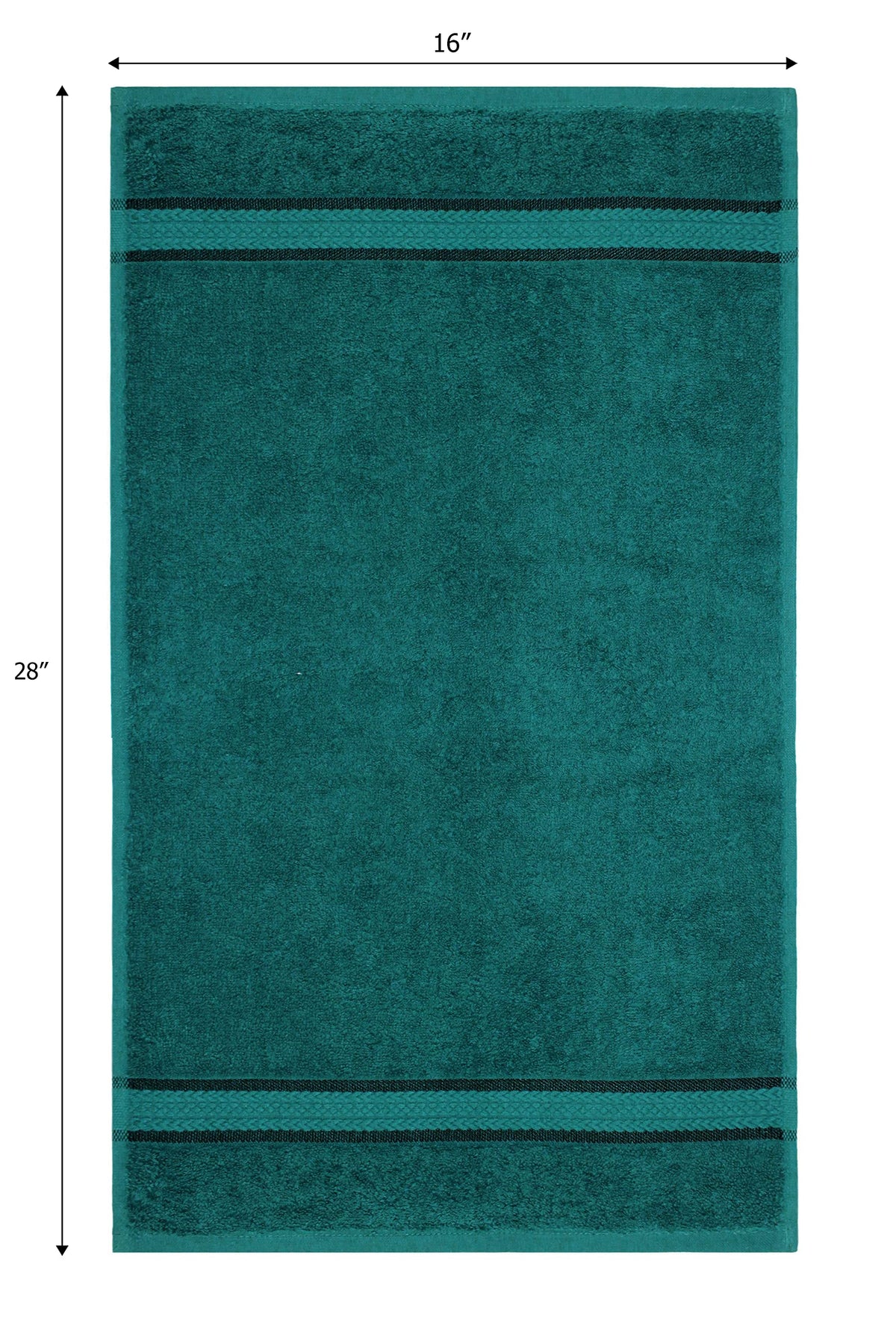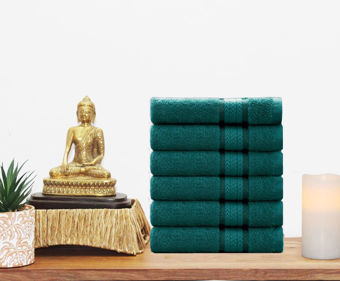 Cotton Craft Ultra Soft 6 Pack Hand Towels 16X28 Teal Weighs 6 Ounces Each - 100% Pure Ringspun Cotton - Luxurious Rayon Trim -
