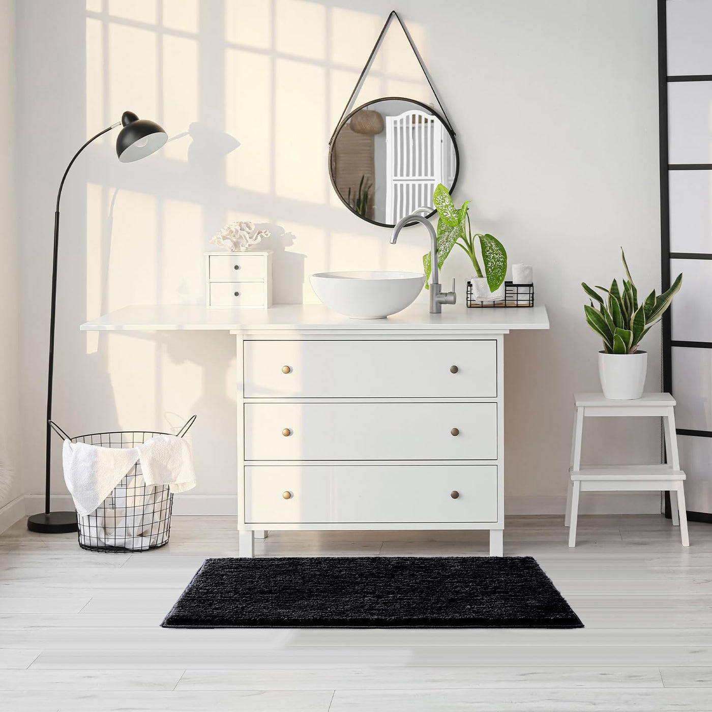 Cozecube Black Bathroom Rug 32'' X 20'', Bath Mats For Bathroom Non Slip, Ultra Soft Bath Rugs For Bathroom Washable, Plush Micr
