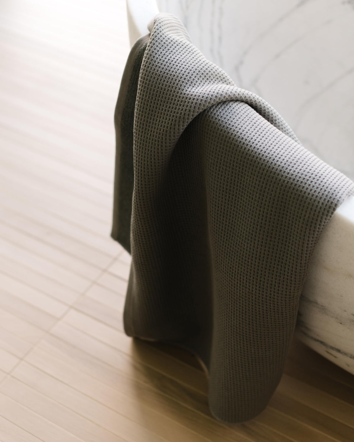 • Q: What is the unique feature of the waffle design? A: The waffle design features a mini waffle weave on one side and soft, ribbed terry on the other, combining a stylish look with superior drying power.