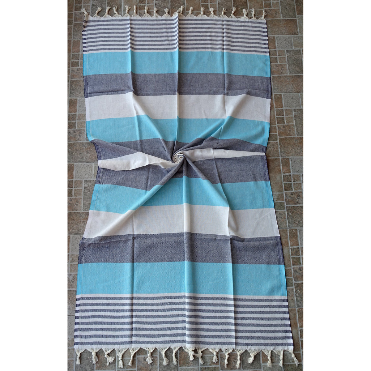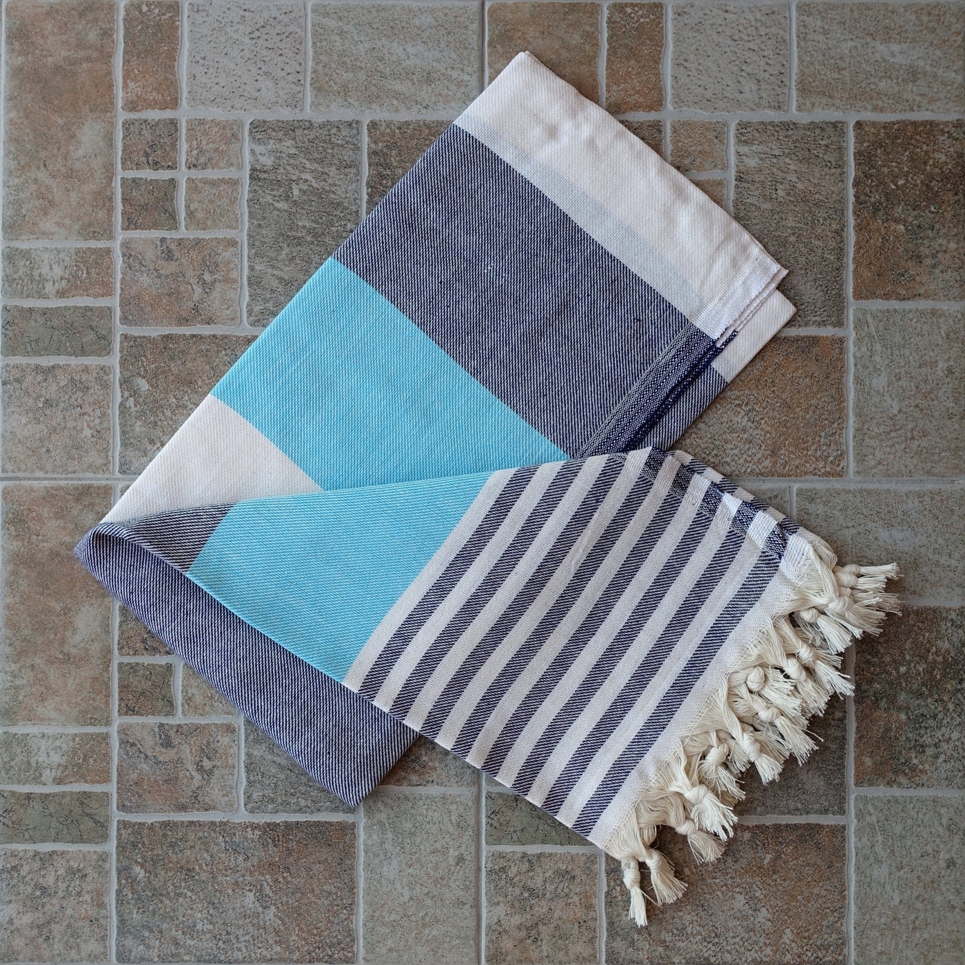 Dandelion - Palette Pattern - Naturally-Dyed Cotton Turkish Towel Peshtemal - 71X39 Inches - Dark Blue & Turquoise