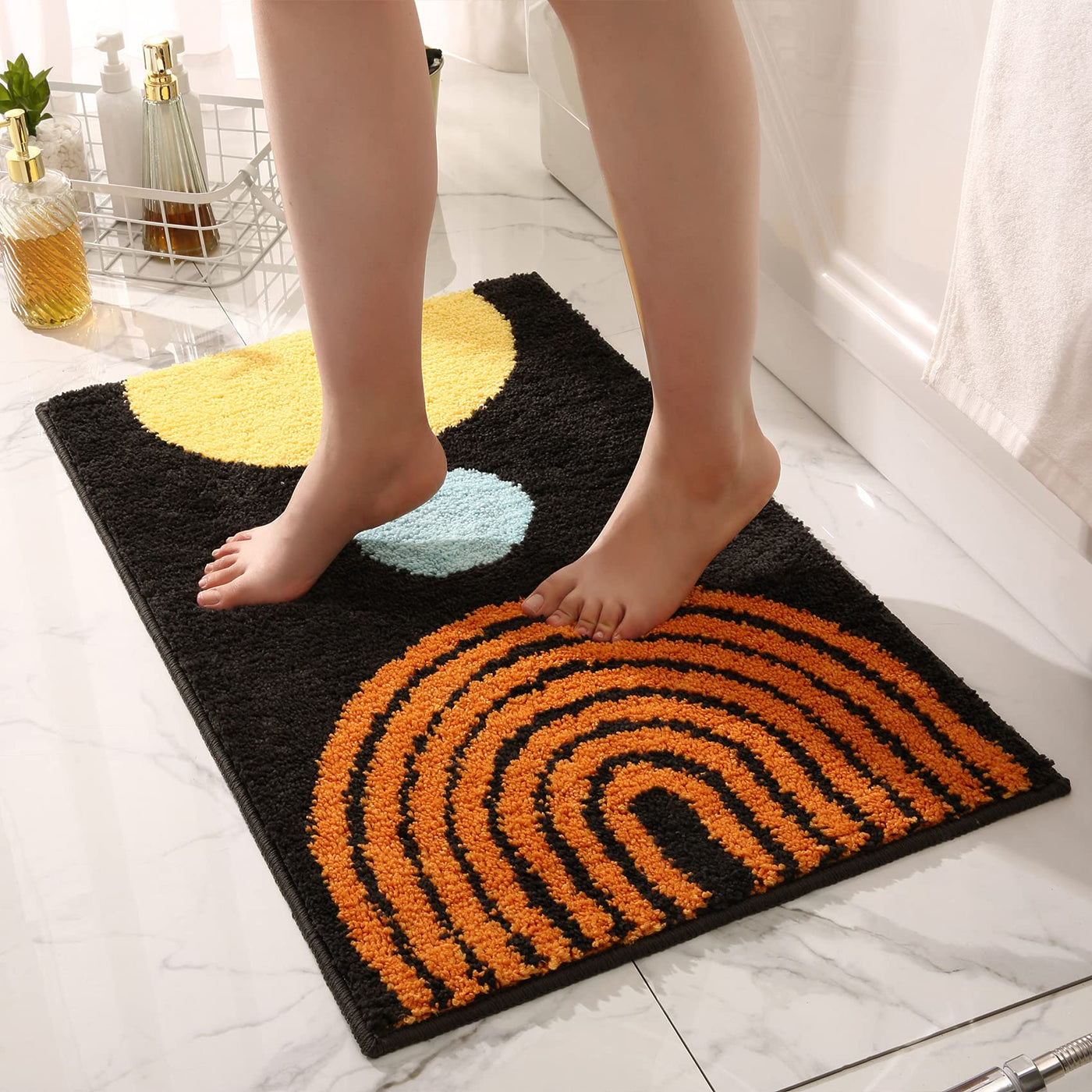 - Q: What features make this rug ideal for bathrooms? A: The rug is extremely absorbent, quickly capturing water and keeping the soles of your feet dry, which is essential for bathroom use.