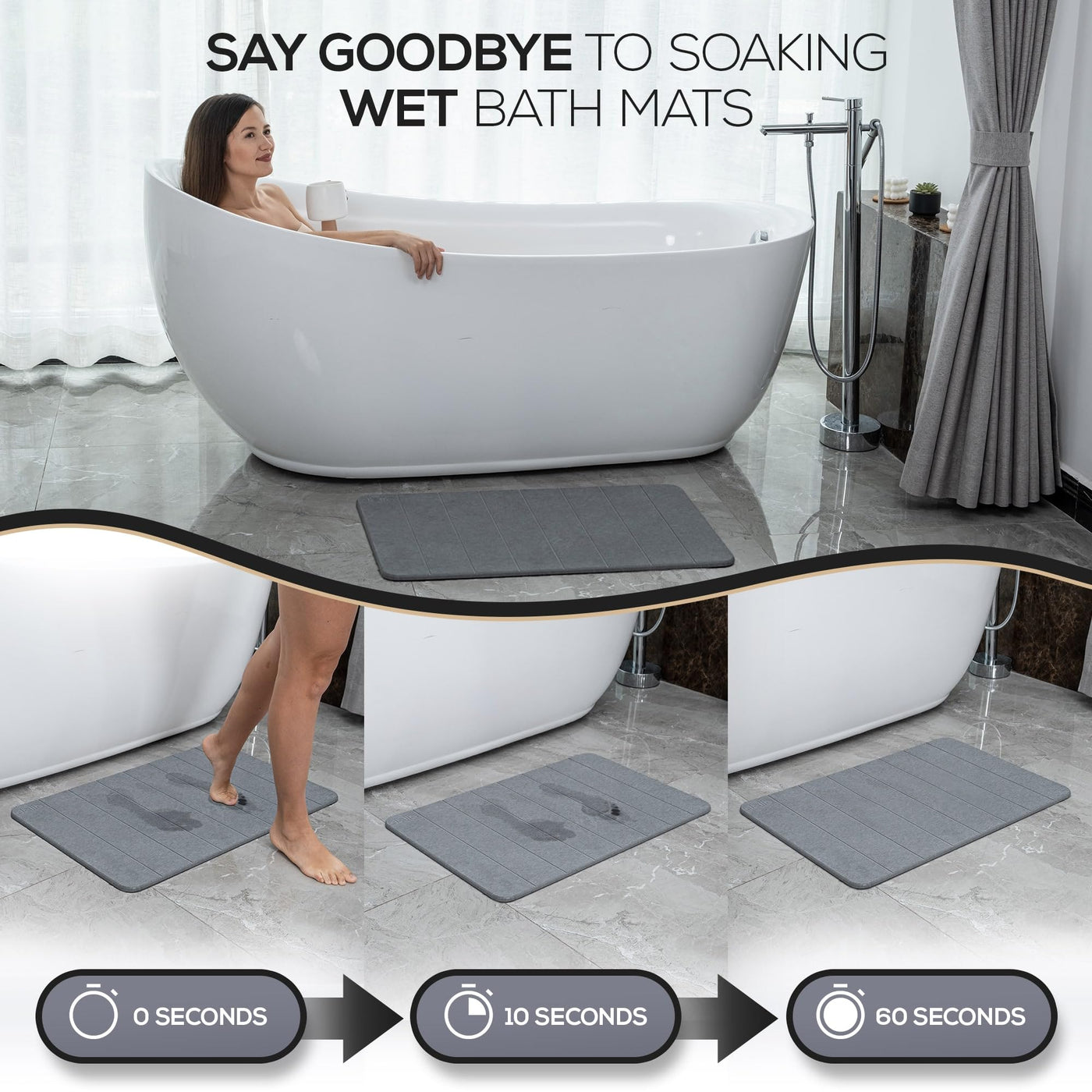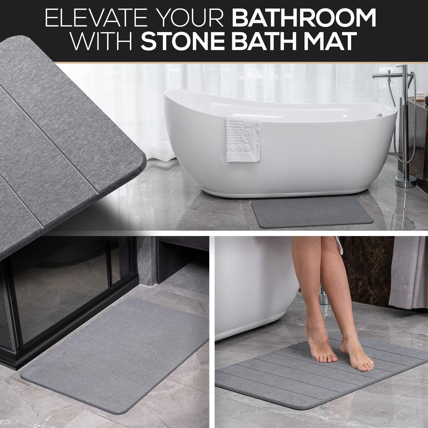 Della Extra-Large Stone Bath Mat - Super Absorbent Diatomaceous Earth Shower Mat - Quick Drying Bathstone For Bathroom Floor - W