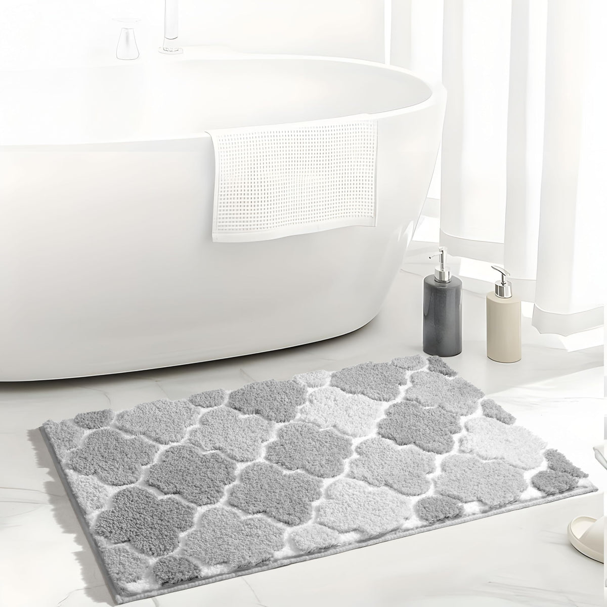- Q: What design does the DEXDE Bathroom Rug feature? A: The rug features a classic modern geometric pattern that adds a minimalist touch to your home decor.