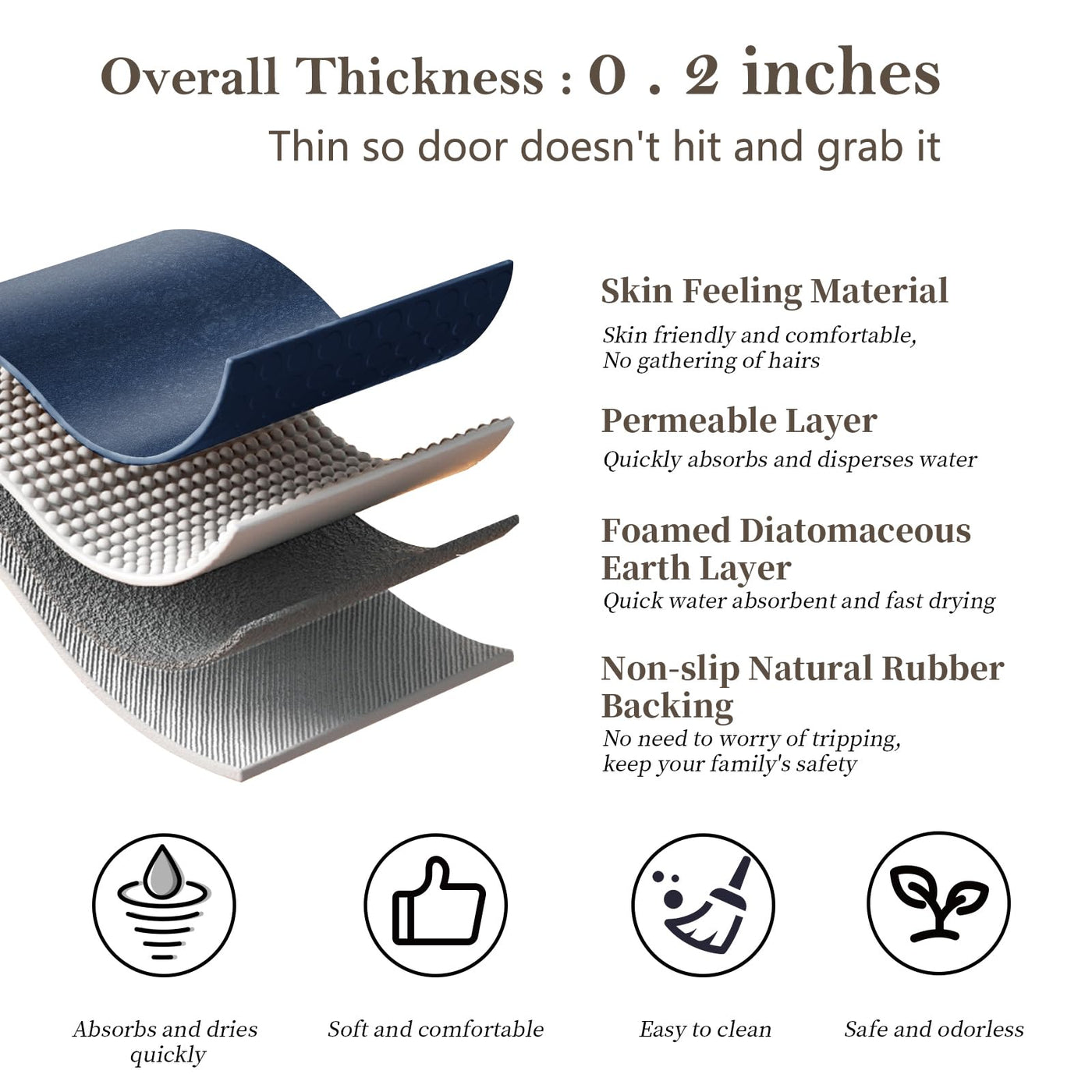 - Q: How does the quick-drying feature work? A: The mat's diatomaceous earth material absorbs water quickly and dries faster than traditional plush mats, allowing water marks to disappear within a few minutes.