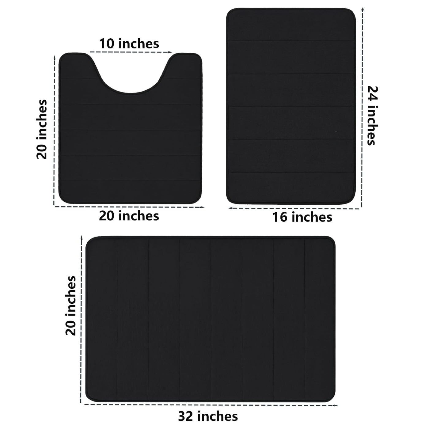 • Q: What are the dimensions of the DTXDTech Bathroom Rugs Set? A: The DTXDTech Bathroom Rugs Set includes three pieces: a bath rug measuring 20"x32", a U-Shape bath mat measuring 20"x20", and a bathroom rug measuring 16"x24".