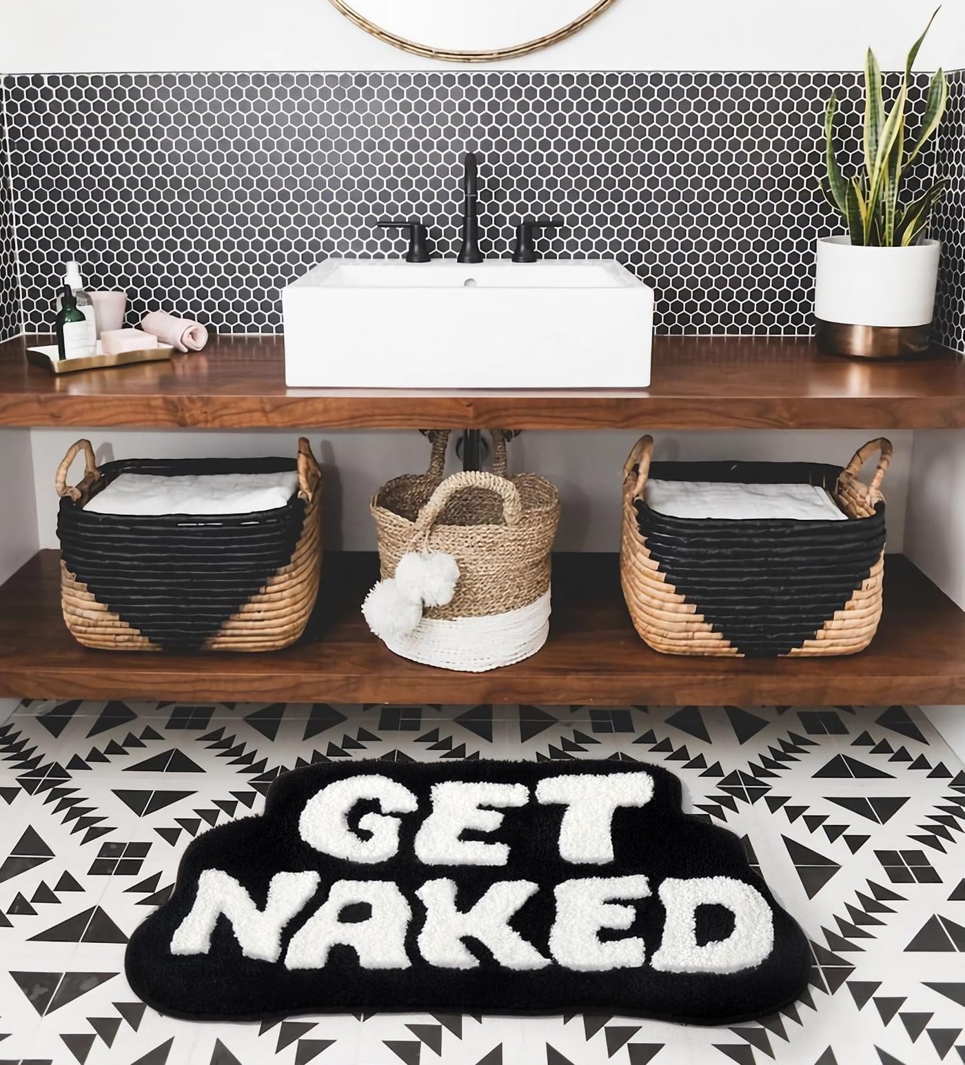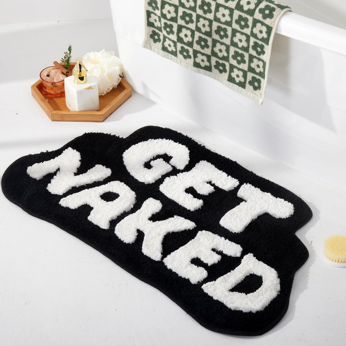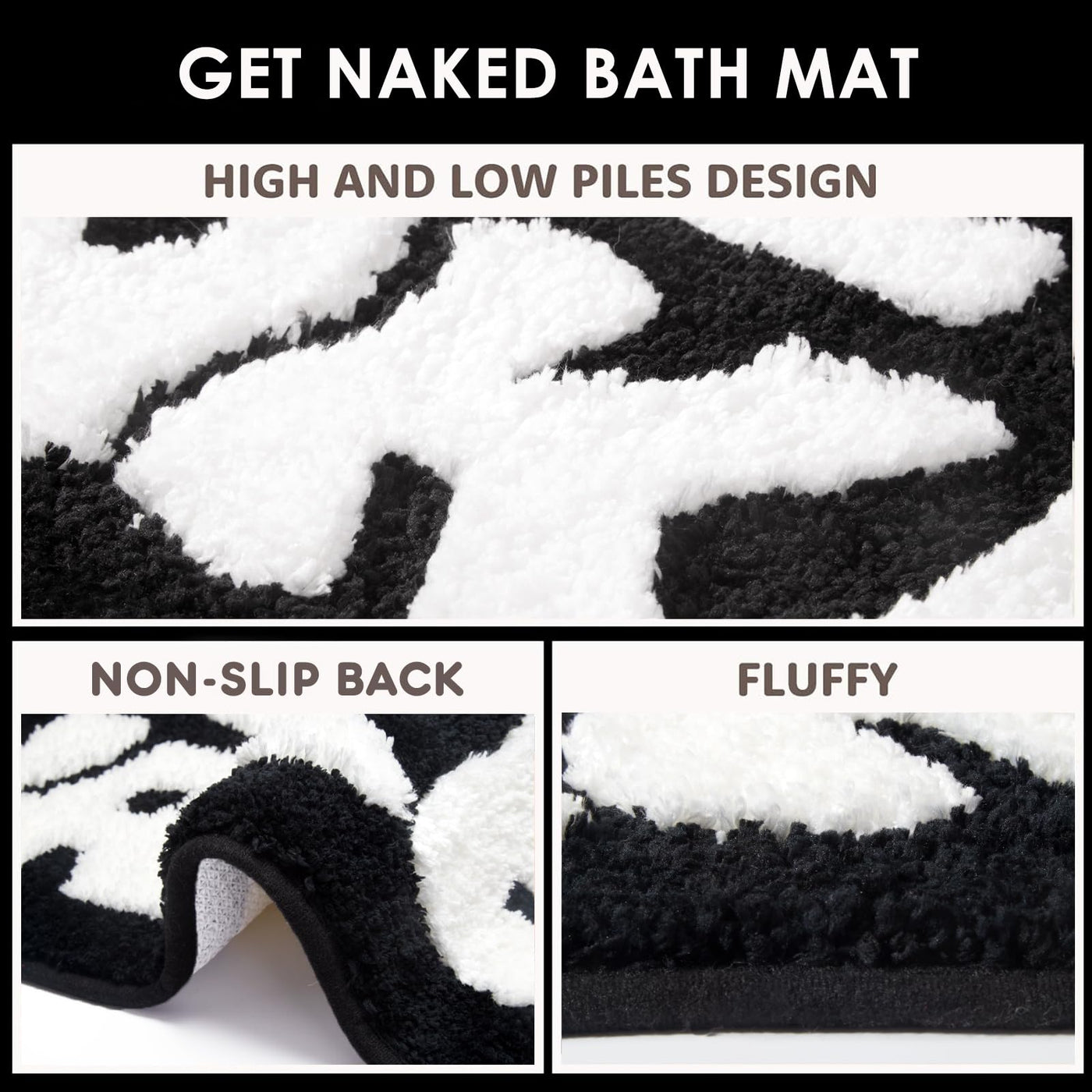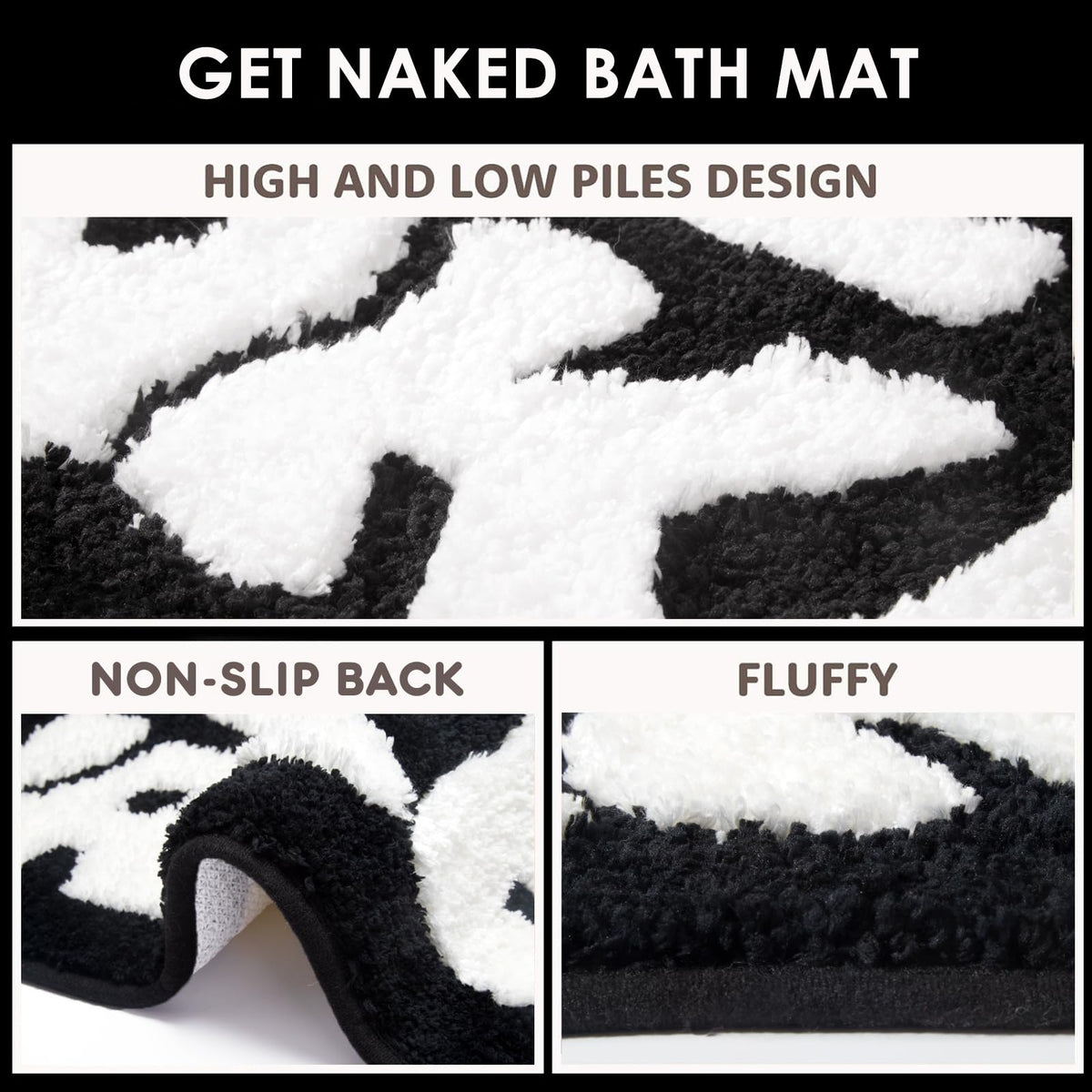 Dyefury Irregular Shaped Get Naked Bath Mat - Funny Bathroom Rugs, Small Cute Bathroom Decor, Non-Slip Black And White Bathroom