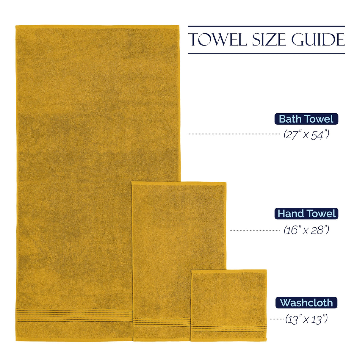 - Q: What are the dimensions of the towels in this set? A: The Elegant Comfort Premium Cotton Towel Set includes two bath towels measuring 27 inches by 54 inches, two hand towels measuring 16 inches by 28 inches, and two washcloths measuring 13 inches by 13 inches.