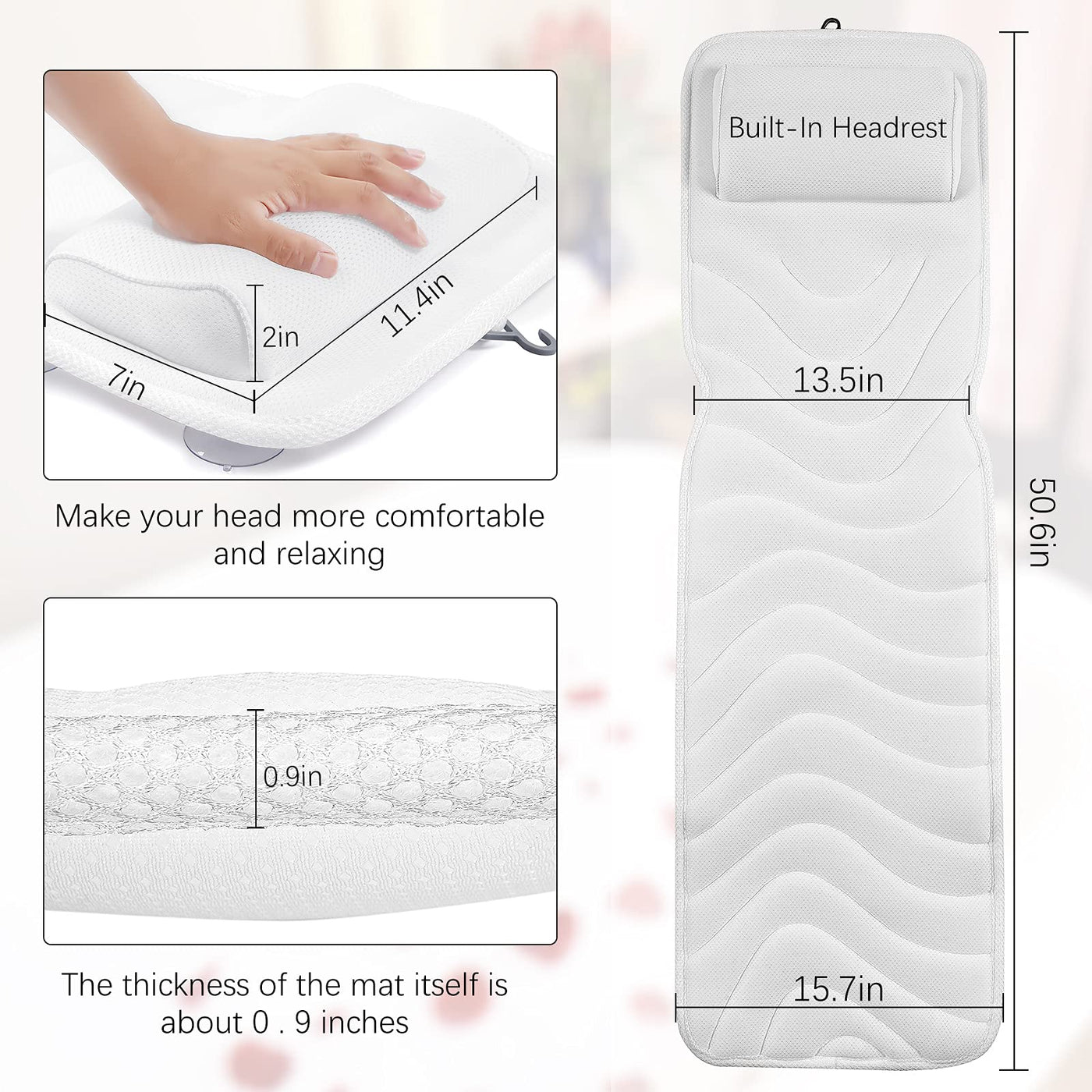 Full Body Bath Pillow For Bathtub, Upgraded Non-Slip Bath Cushion For Tub, Spa Bathtub Pillow Mattress For Head Neck Shoulder An