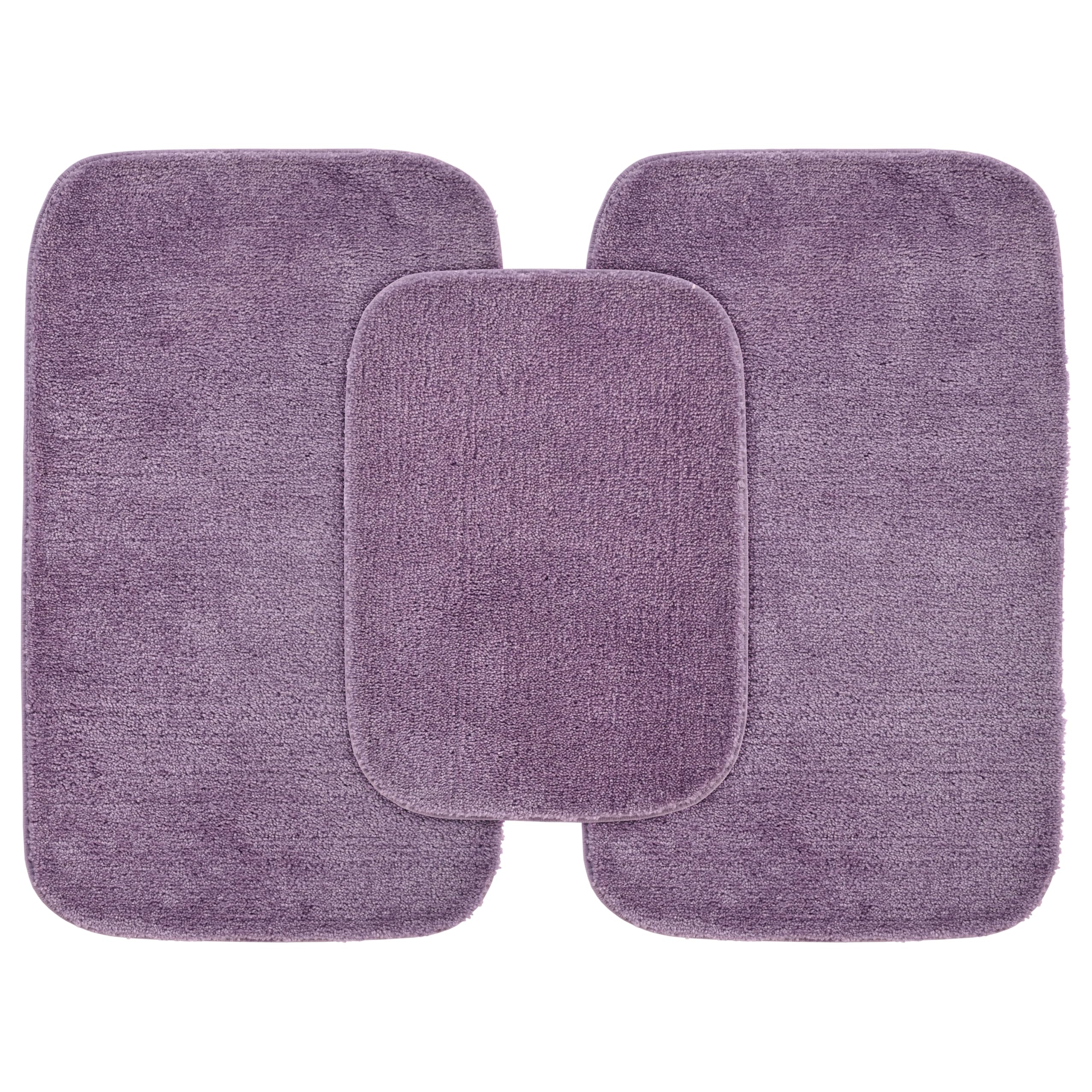 Garland Rug Traditional Nylon Washable Purple 3 Bath Rugs (17 X 24, 21 X 34, 21 X 34) - Soft, Absorbent, And Stylish
