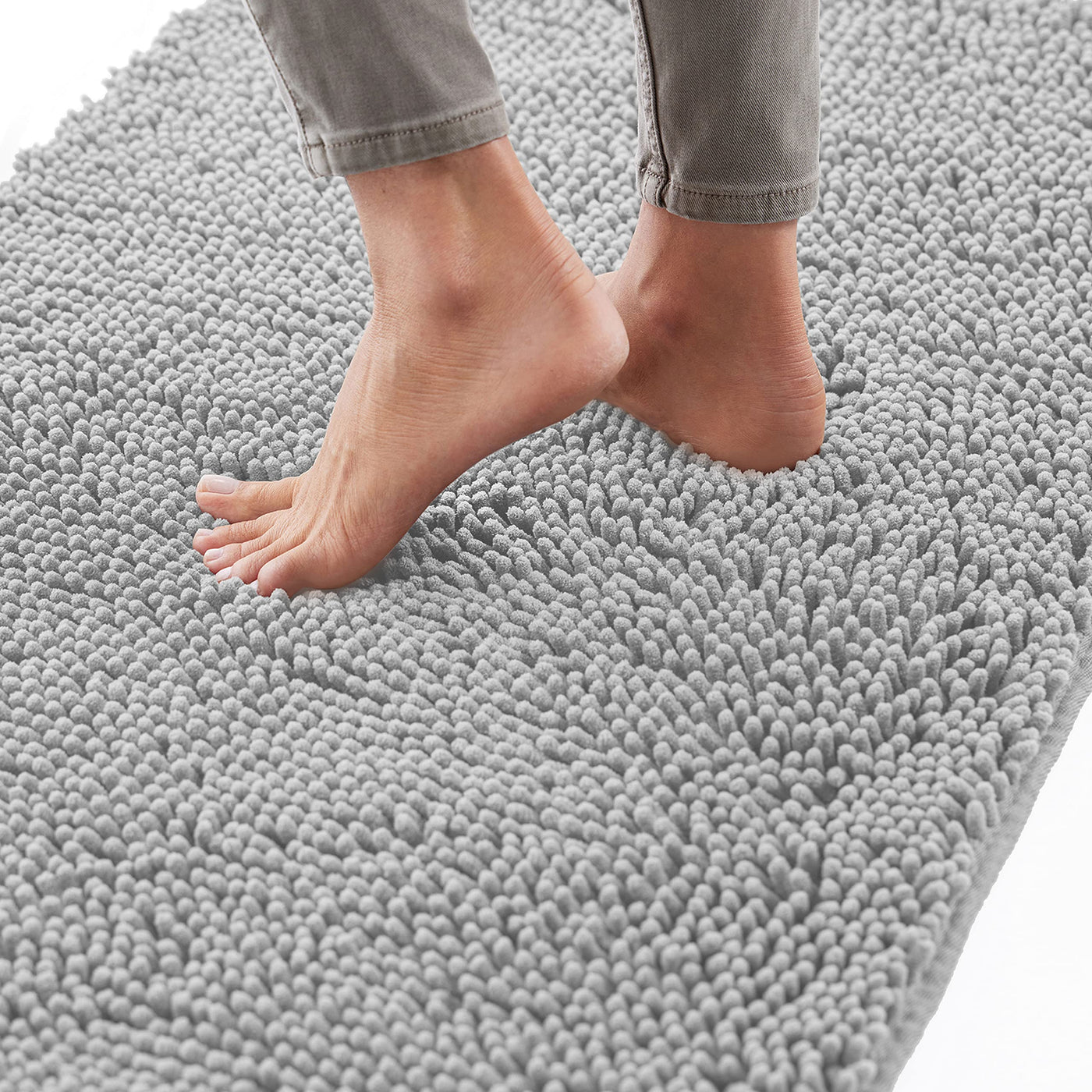Gorilla Grip Bath Rug 70x24 Thick Soft Absorbent Chenille Rubber Backing Bathroom Rugs Microfiber Dries Quickly Shaggy Machine Washable Mats Plush Durable Rug Bathtub and Shower Floor Light Gray