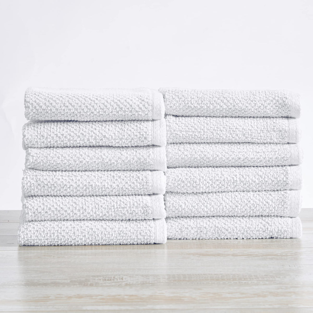 Great Bay Home 12-Pack 100% Cotton, Quick-Dry Textured Washcloths. Ultra-Absorbent, Popcorn Weave. Acacia Collection. (Wash 12Pk