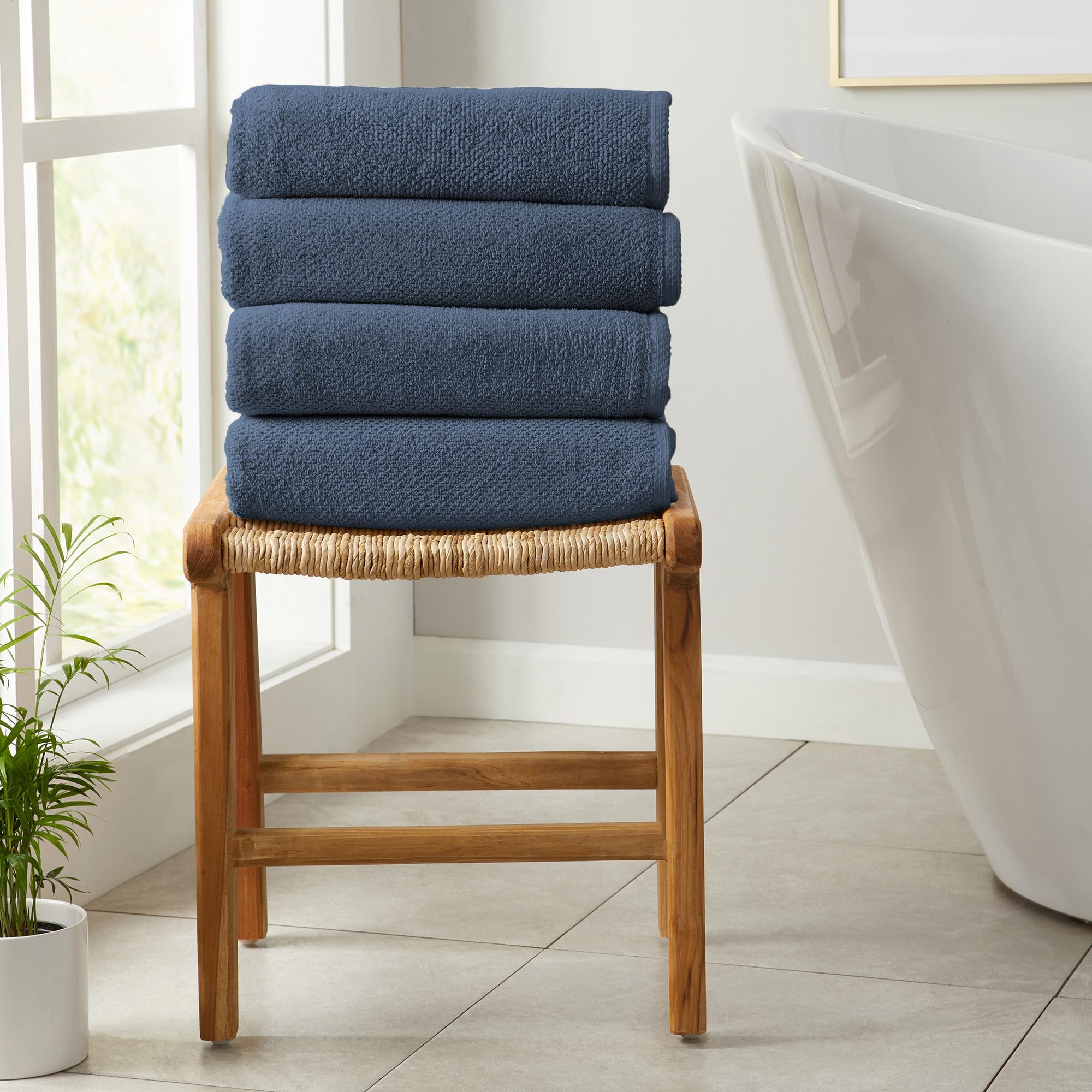 Great Bay Home Navy Bath Towels - 100% Cotton 4 Pack 52X30 Bath Towel Set - Absorbent, Quick-Drying, Durable Towels For Bathroom