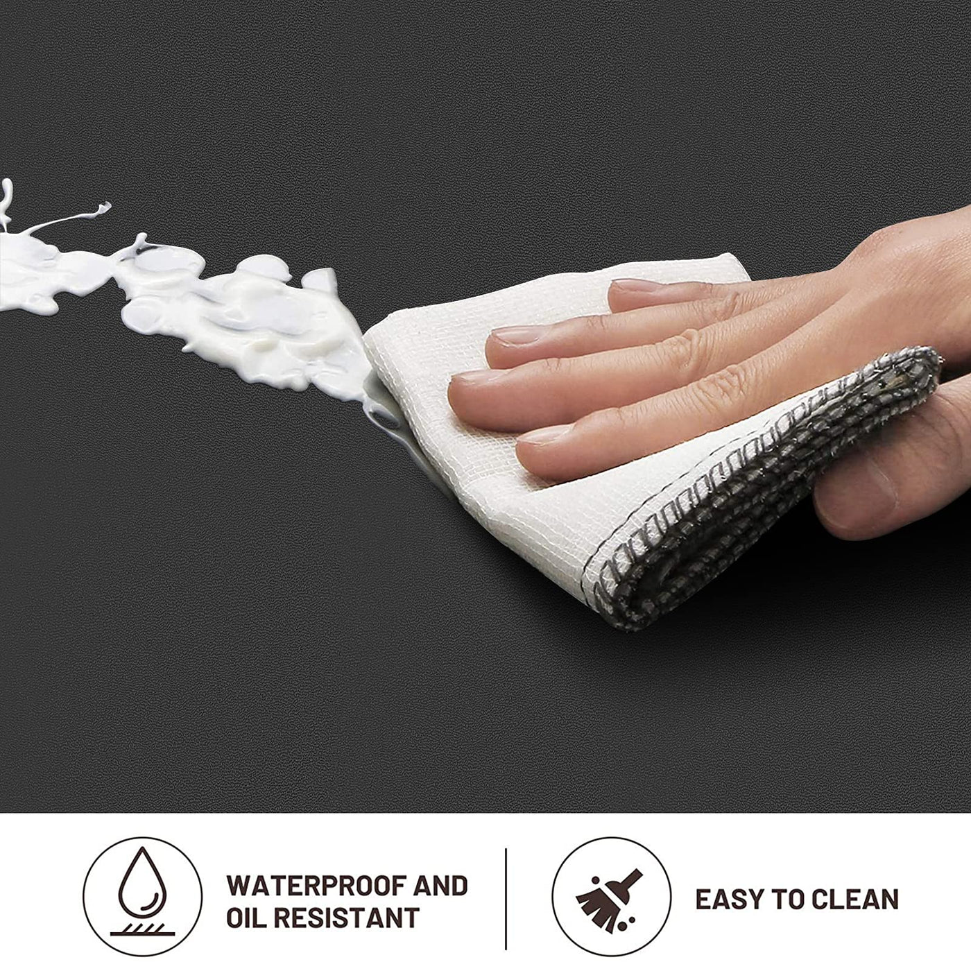 - Q: Is the top of the mat waterproof? A: Yes, the top of the HappyTrends Kitchen Mat is waterproof and oil-proof, making it easy to clean.