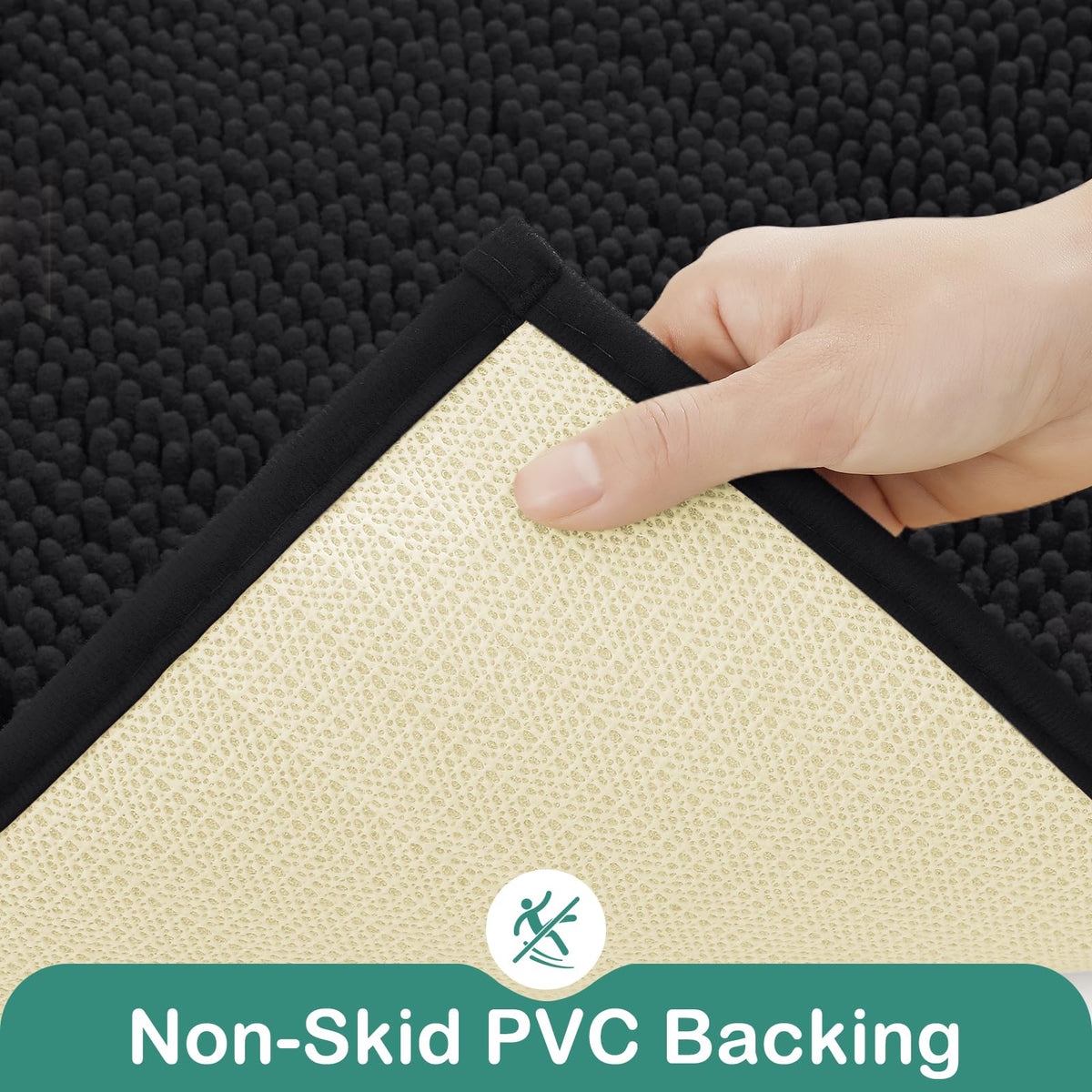 Homeideas Bathroom Rugs Set 2 Pieces, Ultra Soft Non Slip Absorbent Chenille Toilet Bath Mat Set (Black)