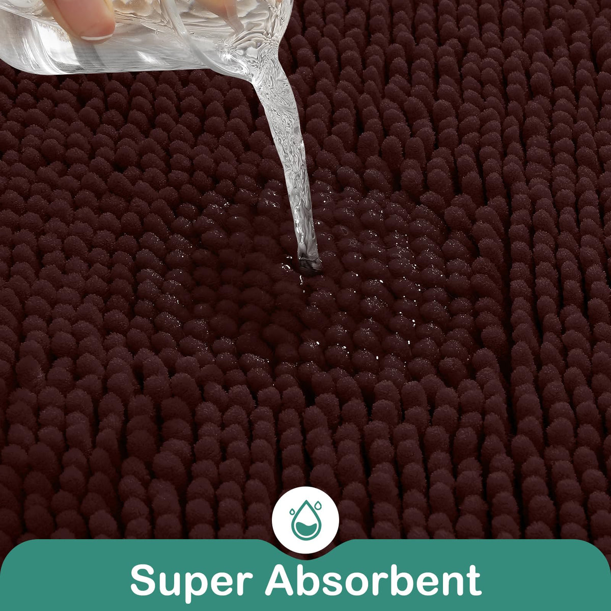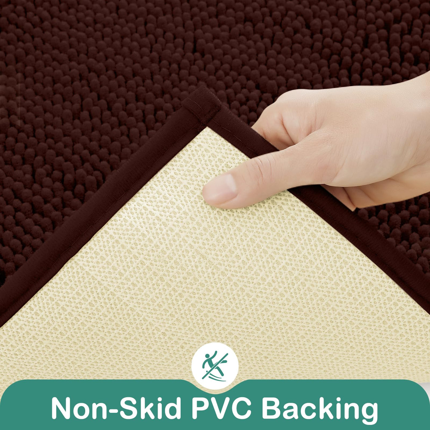 Homeideas Bathroom Rugs Set 2 Pieces, Ultra Soft Non Slip Absorbent Chenille Toilet Bath Mat Set (Brown)