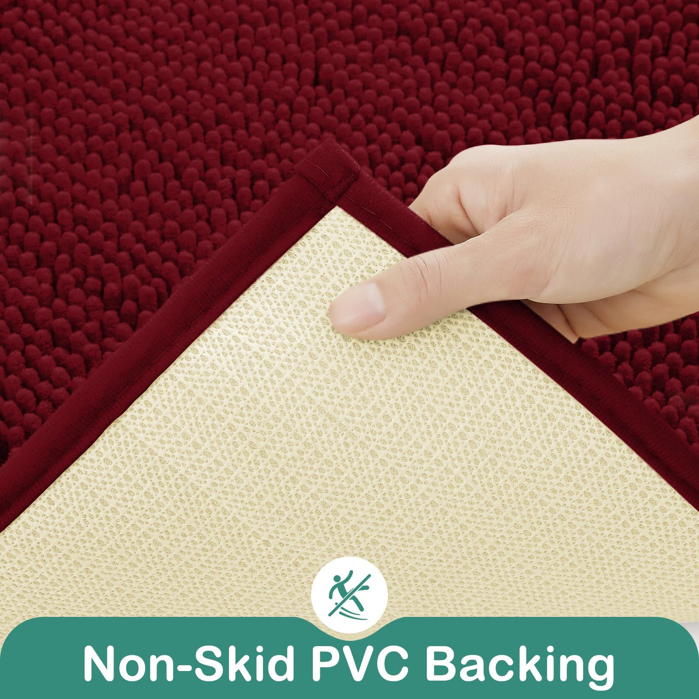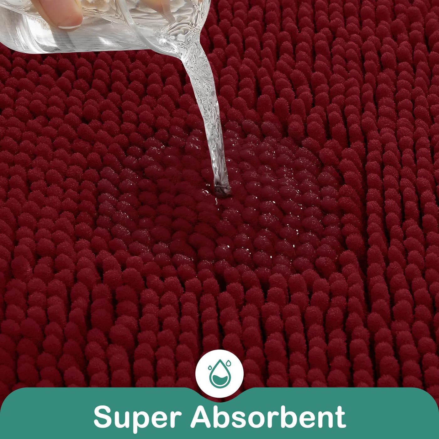 Homeideas Bathroom Rugs Set 2 Pieces, Ultra Soft Non Slip Absorbent Chenille Toilet Bath Mat Set (Burgundy)
