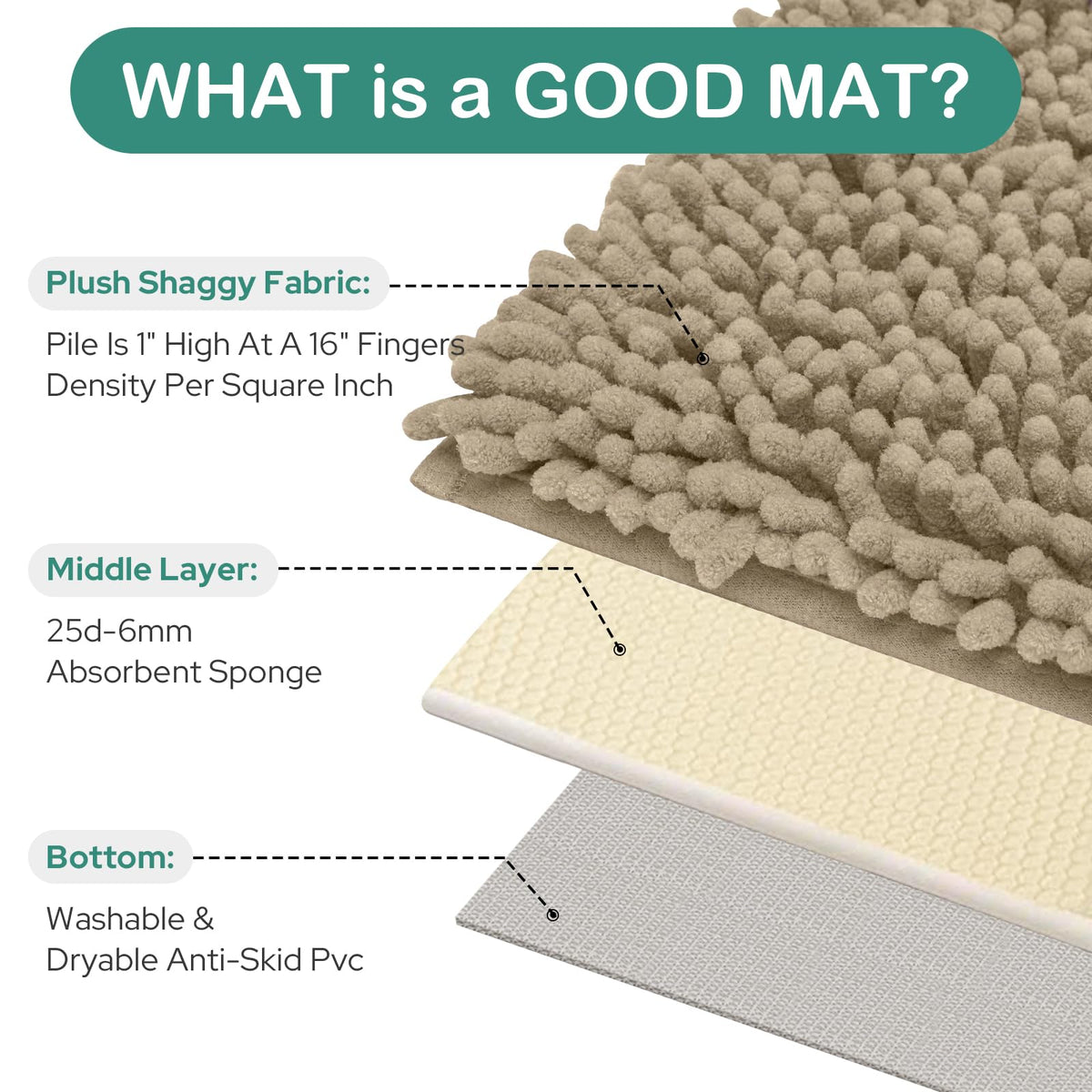 - Q: How absorbent are these bathroom rugs? A: These upgraded shag rugs are designed to be highly absorbent, effectively soaking up water to keep your floors dry.