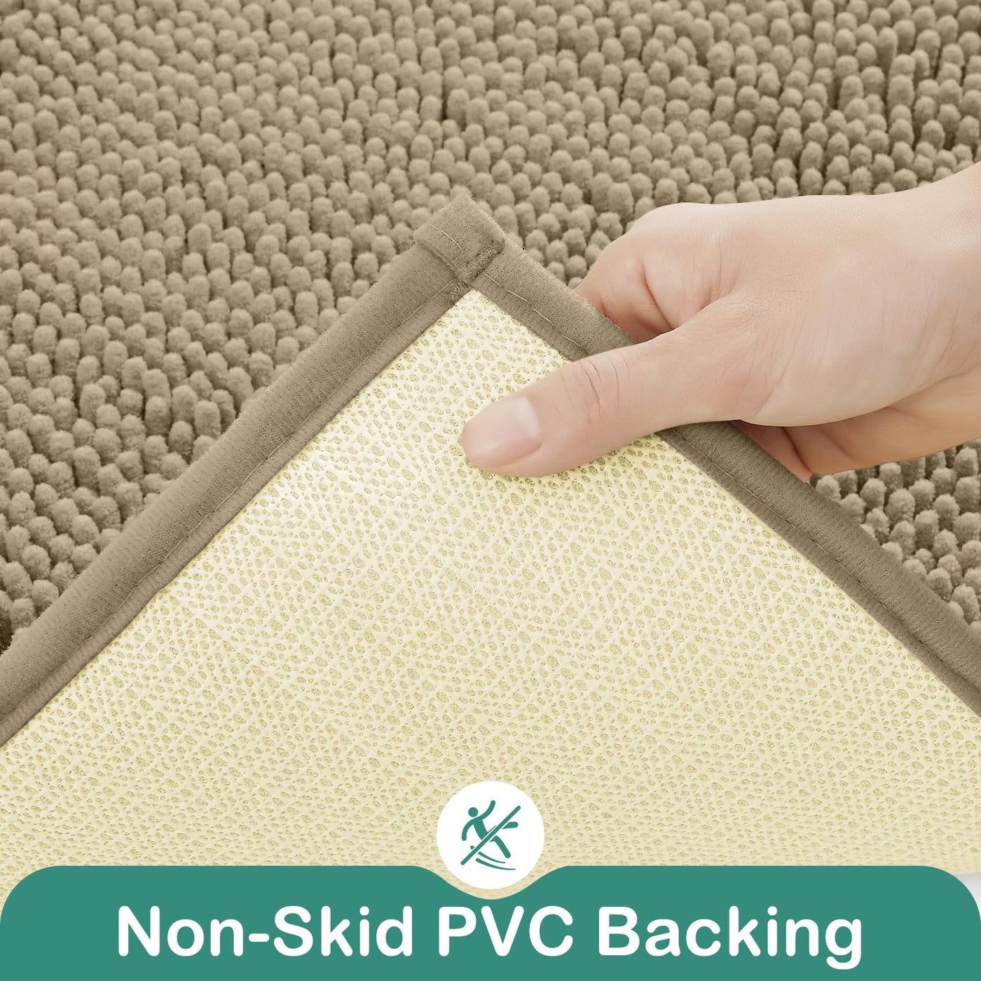Homeideas Bathroom Rugs Set 2 Pieces, Ultra Soft Non Slip Absorbent Chenille Toilet Bath Mat Set (Taupe)