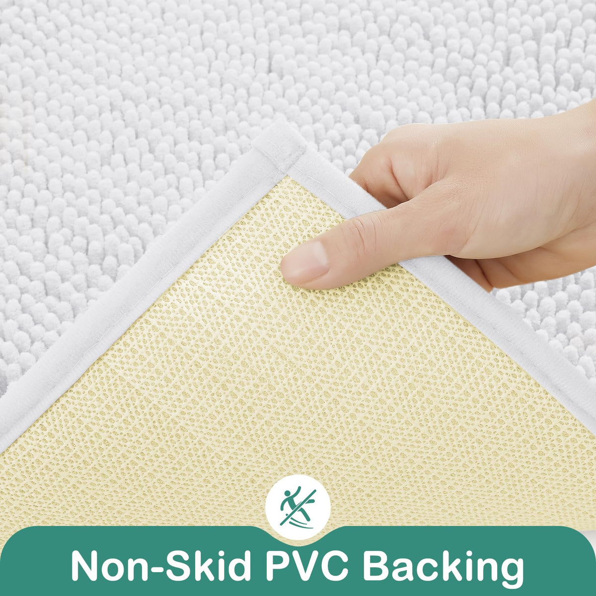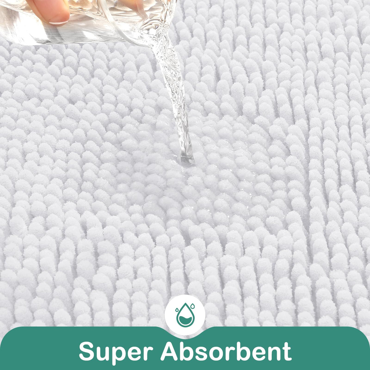 Homeideas Bathroom Rugs Set 2 Pieces, Ultra Soft Non Slip Absorbent Chenille Toilet Bath Mat Set (White)