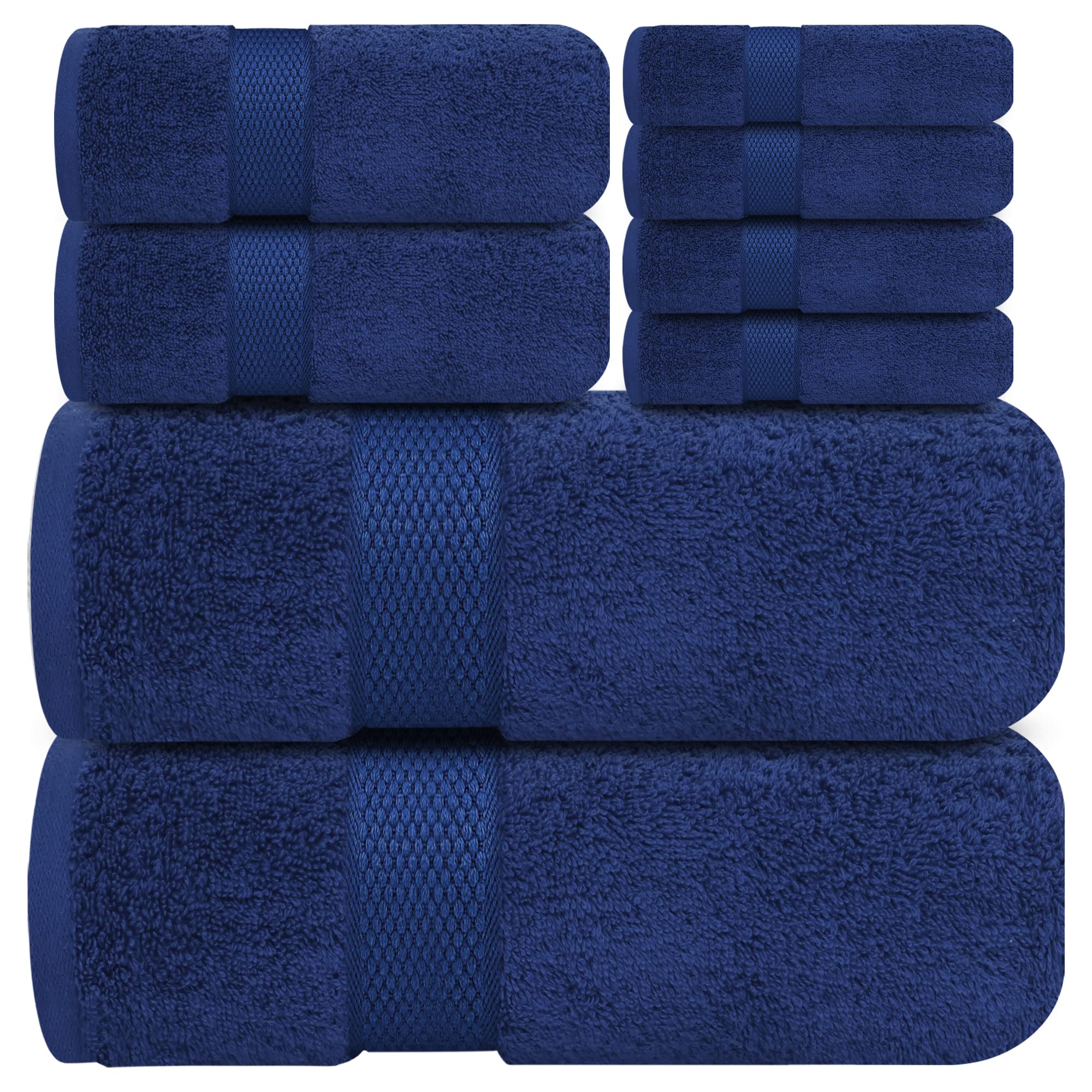 Infinitee Xclusives Premium Navy Bath Towel Set For Bathroom - [Pack Of 8] 100% Cotton Bathroom Towel Set - 2 Bath Towels, 2 Han