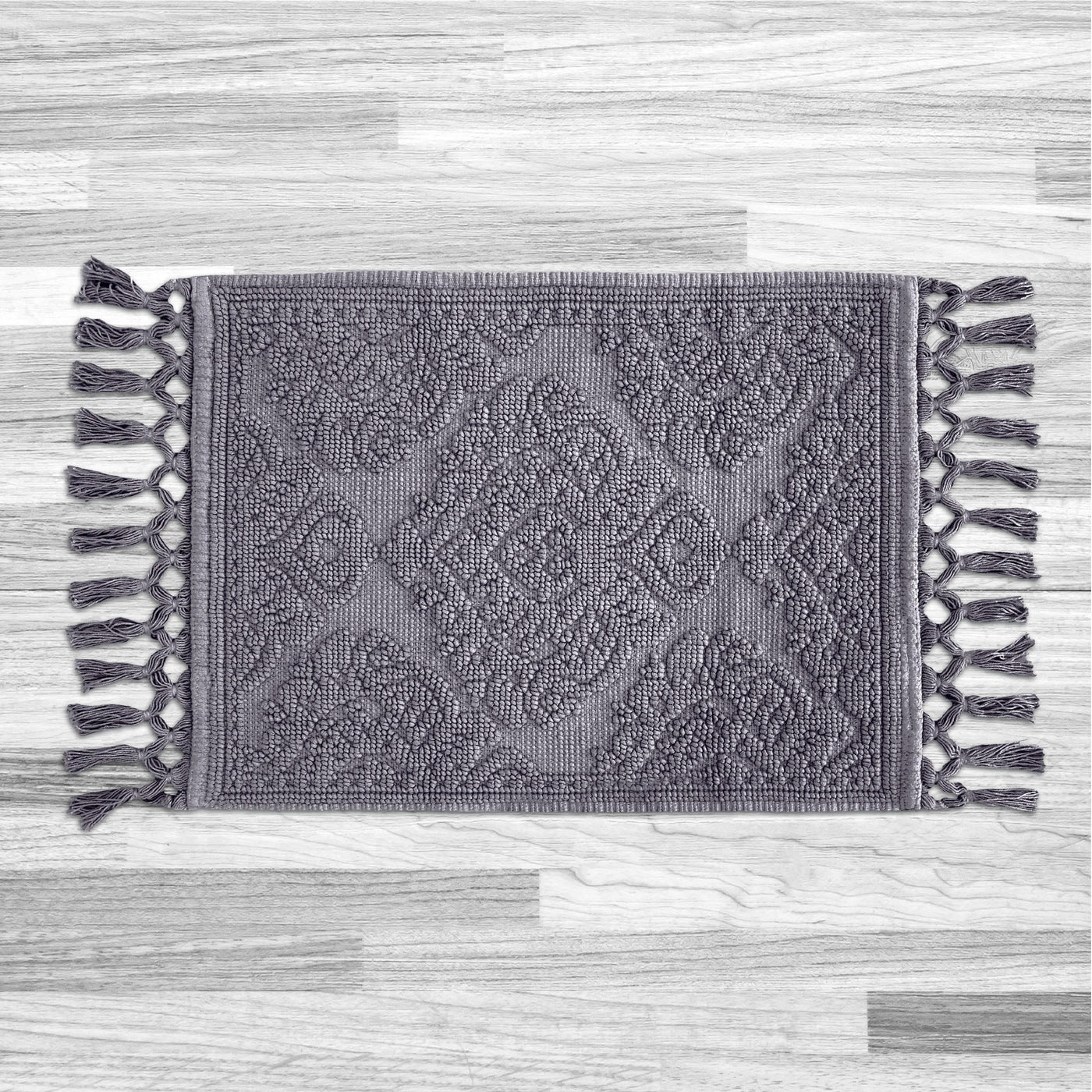 Jean Pierre - Ricardo Bath Mat, Woven Fringe Bathroom Rugs, 100% Cotton, Premium Bathroom Decor - Measures 17'' X 31'' - Dark Gr