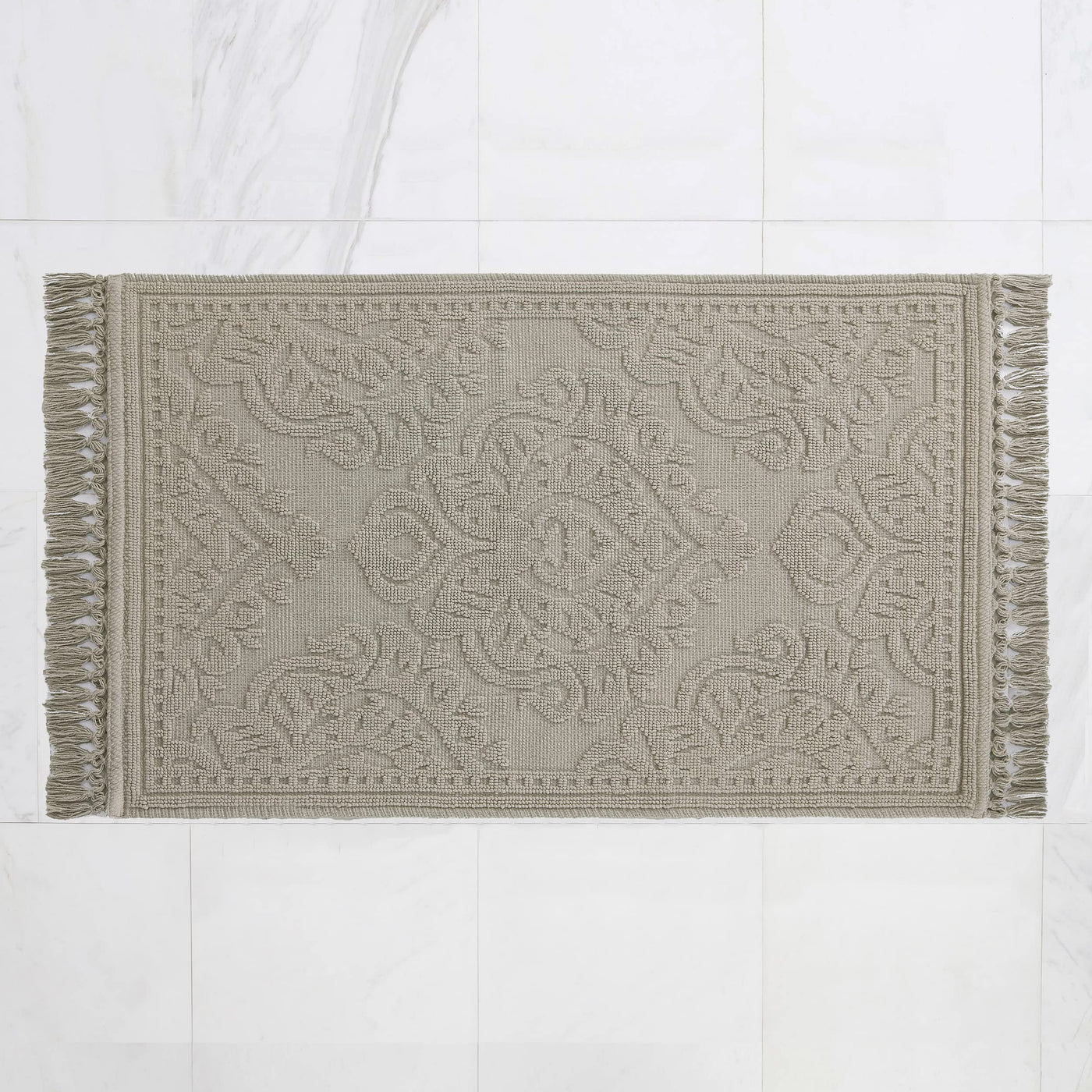 Jean Pierre - Ricardo Bath Mat, Woven Fringe Bathroom Rugs, 100% Cotton, Premium Bathroom Decor - Measures 21'' X 41'' - Linen