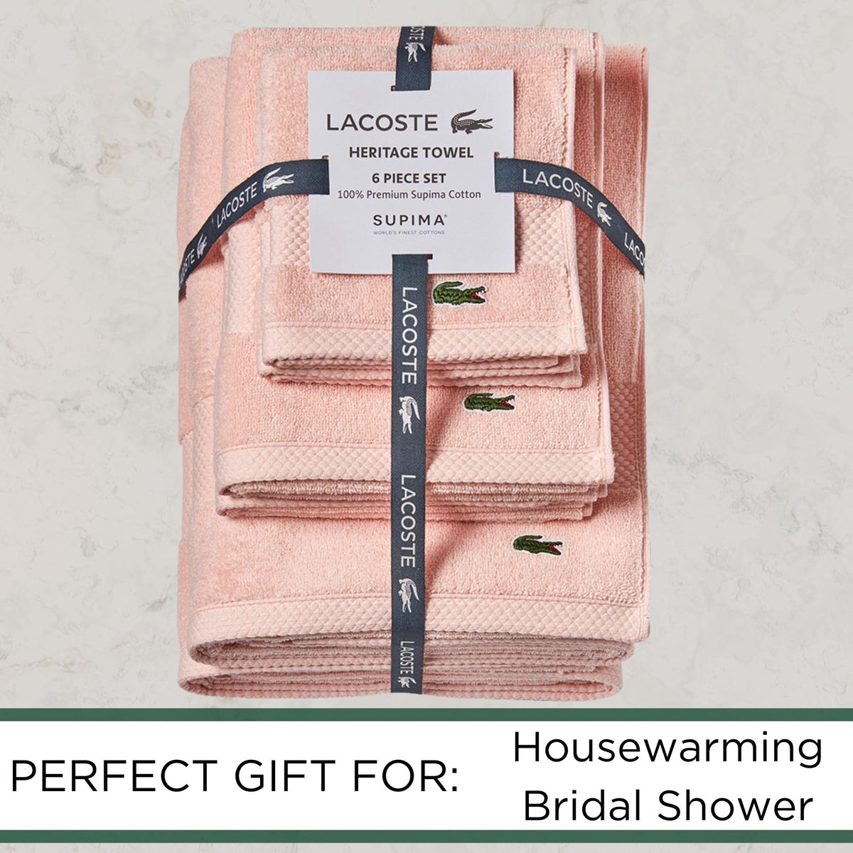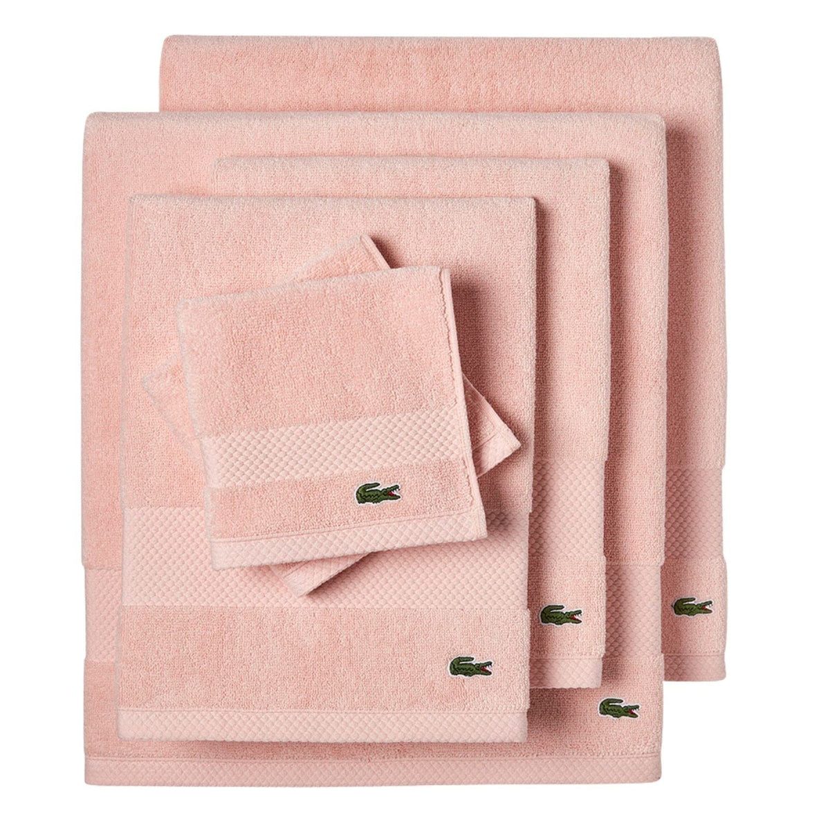 Lacoste Heritage Supima Cotton 6-Piece Towel Set, 2 Bath Towels, 2 Hand Towels, 2 Washcloths, Light Pink