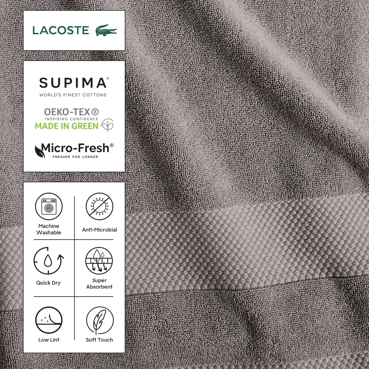 • Q: What makes the Lacoste Heritage Supima Cotton Hand Towel a premium choice? A: Its high-quality Supima cotton construction offers superior softness, durability, and color retention, setting it apart from standard towels.