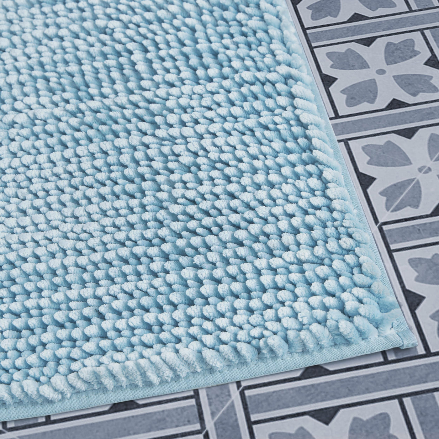 • Q: Is the material of the bath rugs absorbent? A: Yes, the Butter Chenille material is ultra-absorbent, designed to quickly soak up water and keep your floors dry.