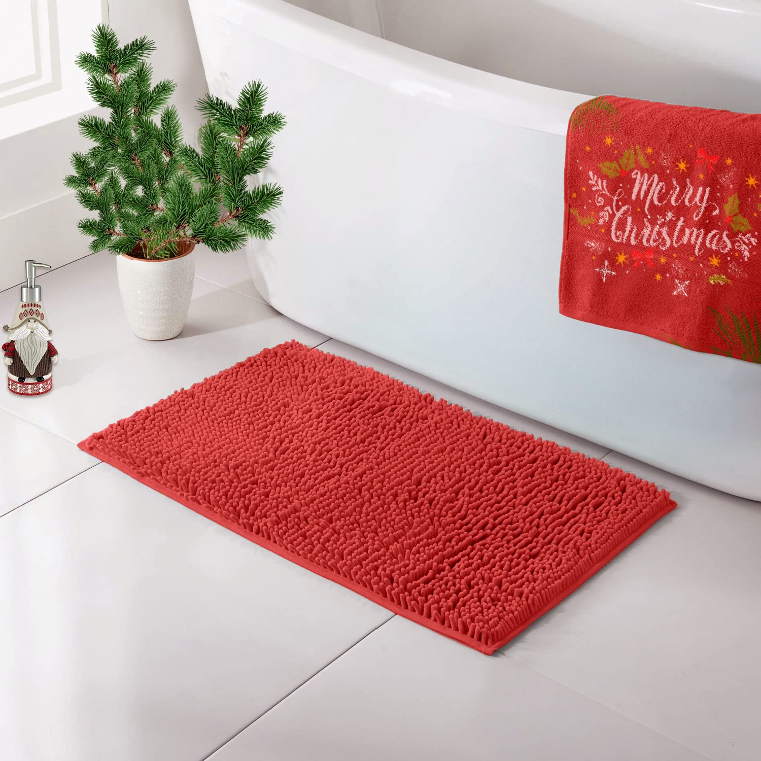 Luxurux Red Bath Mat, Christmas D Cor Extra-Soft Plush Bath Bathroom Rug,1'' Chenille Microfiber Material, Super Absorbent Sha