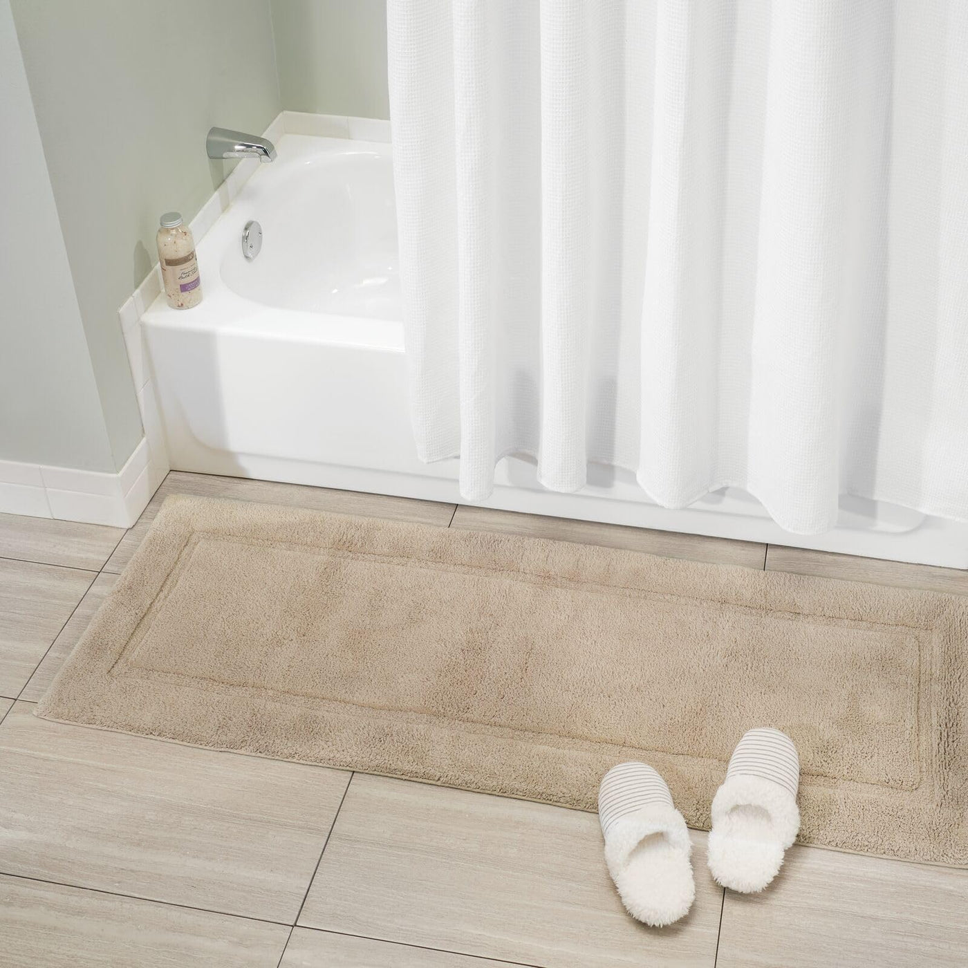 • Q: What materials is the mDesign Spa Mat Rug made from? A: The mDesign Spa Mat Rug is made from 100% cotton, which ensures it is soft and absorbent.