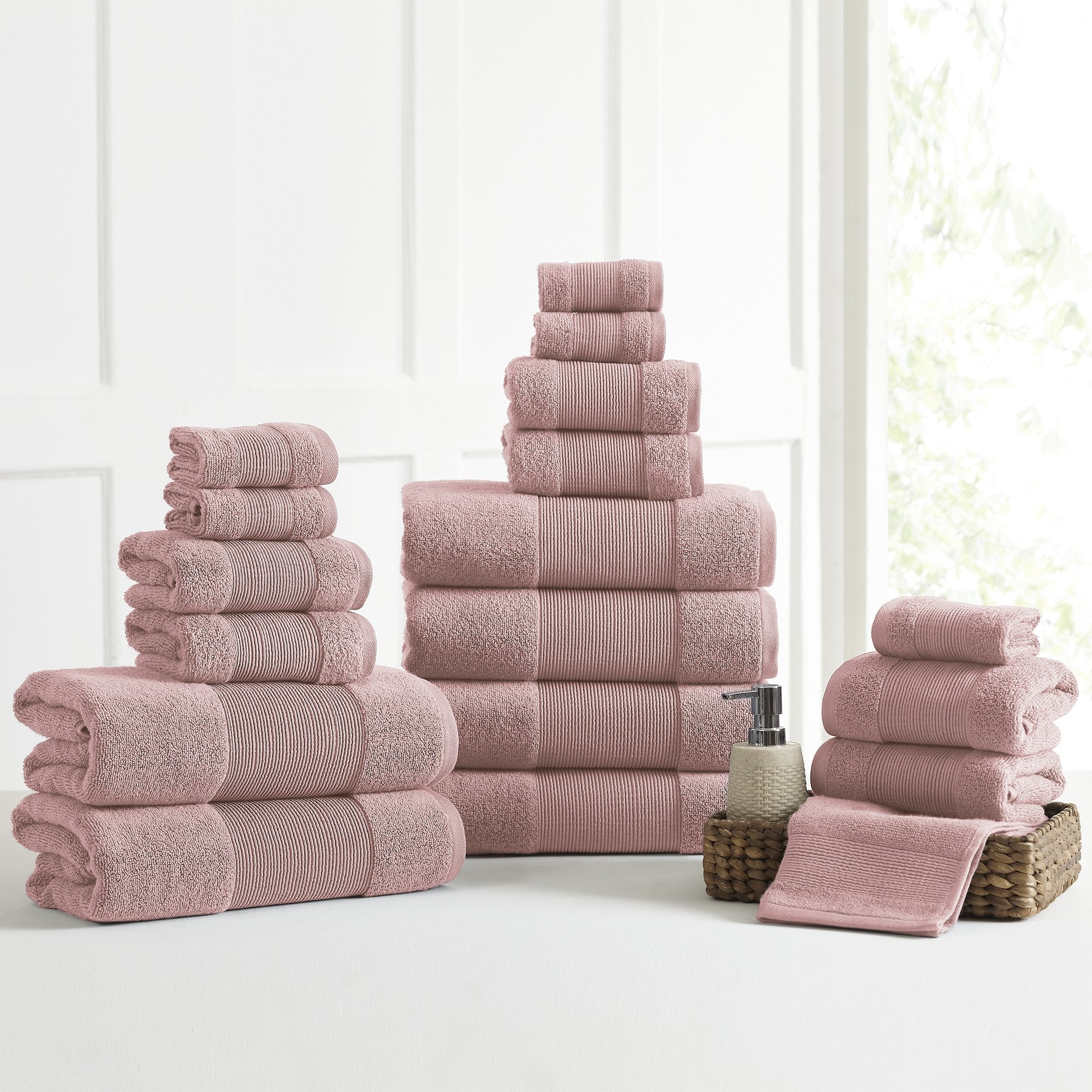 Modern Threads Air Cloud 18-Piece Towel Set - 100% Zero-Twist Cotton, 500 Gsm, Quick Dry & Plush, Pink