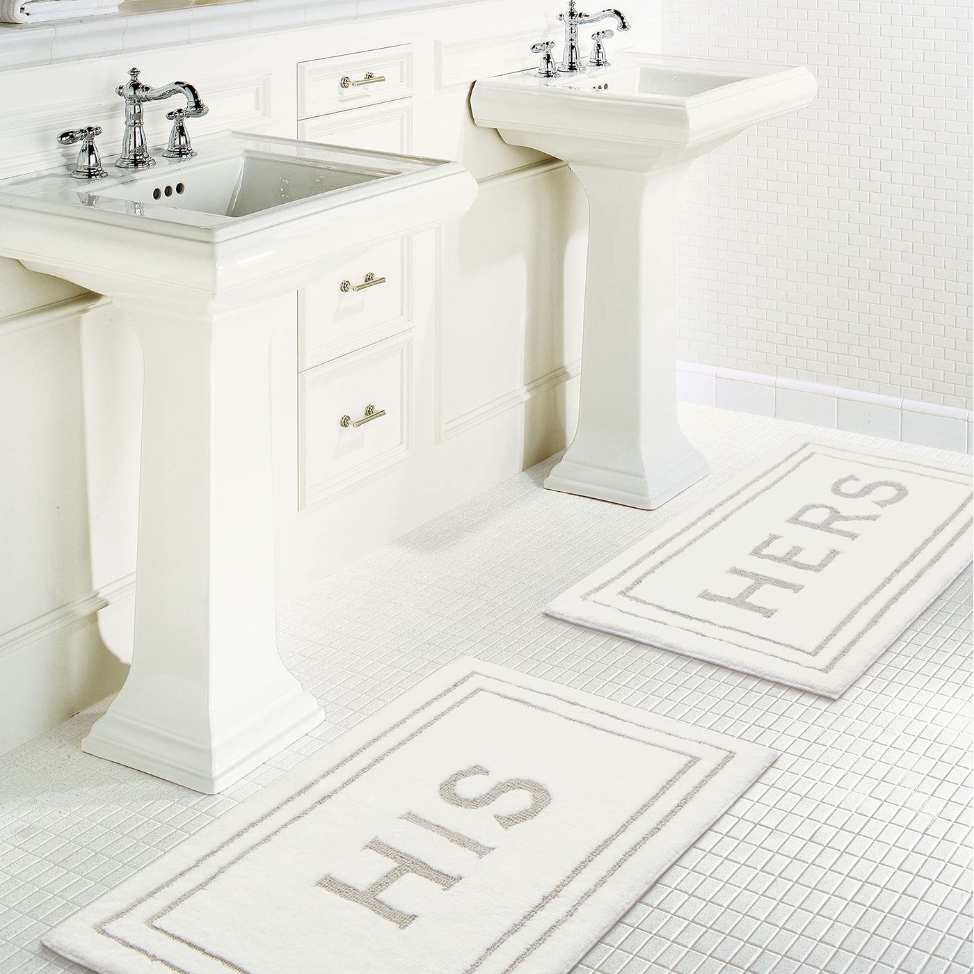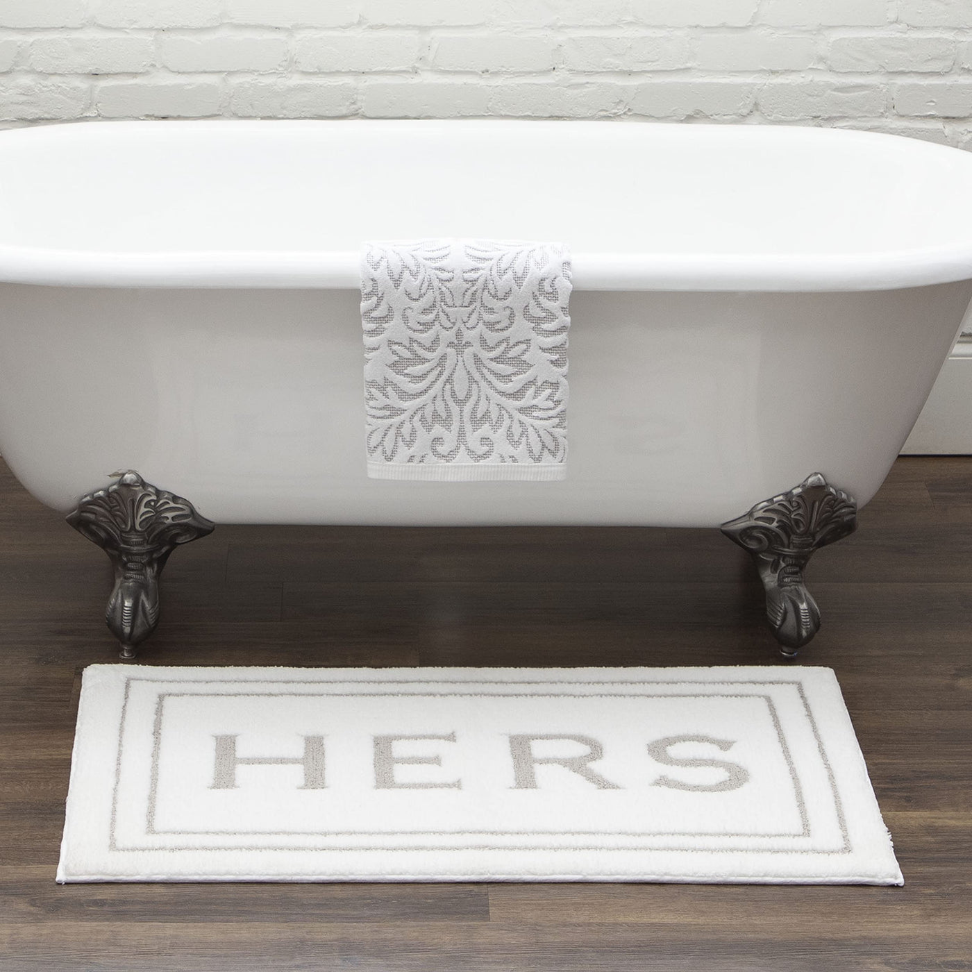 • Q: Are there size options available for this bath mat? A: Yes, the His and Hers Bath Rug Collection includes two size options to suit different bathroom needs.