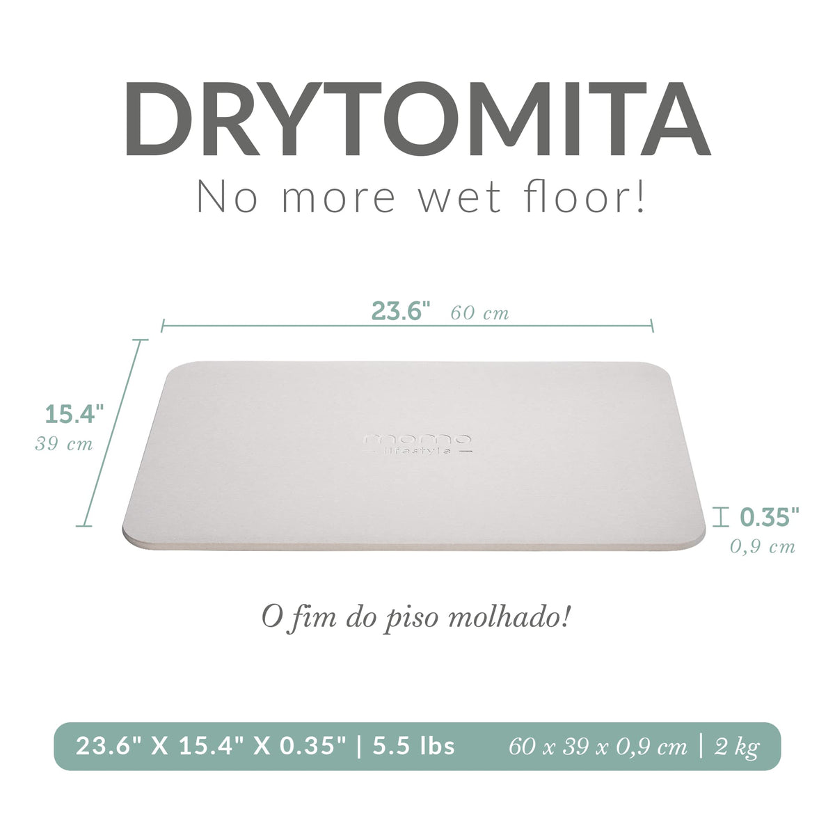 - Q: How does the Drytomita technology work? A: The Drytomita technology in the bath mat allows it to quickly absorb water and dry in just minutes, preventing wet bathroom floors.
