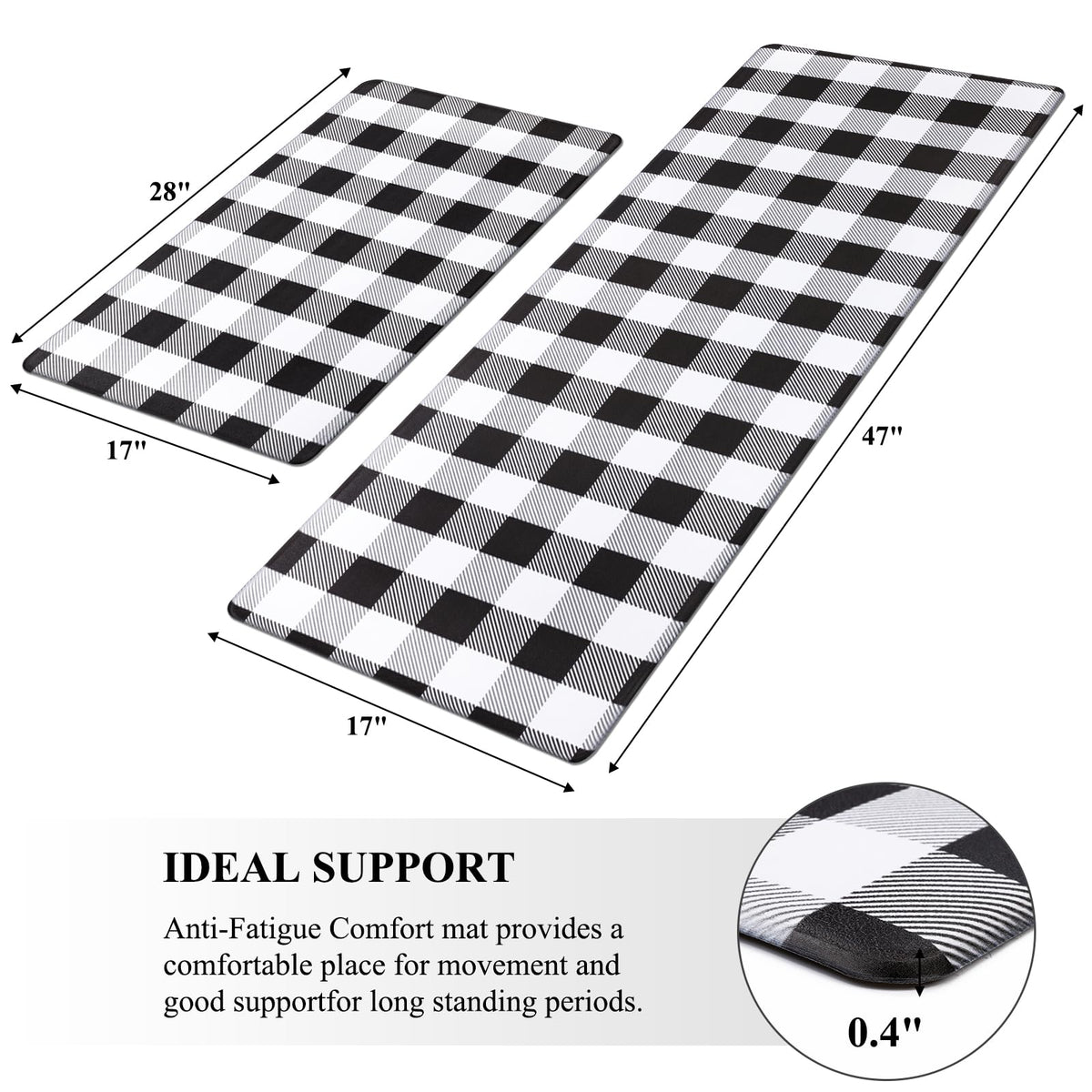 - Q: What design options are available for these mats? A: The Pauwer kitchen mats feature a stylish black and white buffalo check/plaid design, suitable for various kitchen decors.