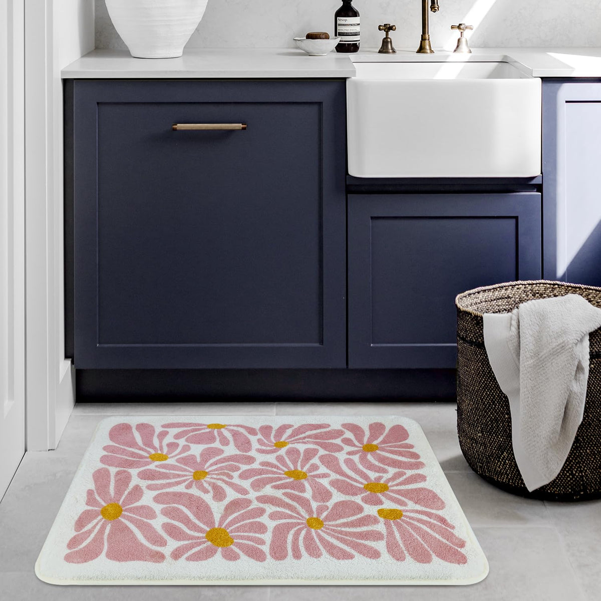 - Q: Can this rug be used as a bath blanket? A: Yes, the charming flower bath mat can double as a stylish and amusing bath blanket.
